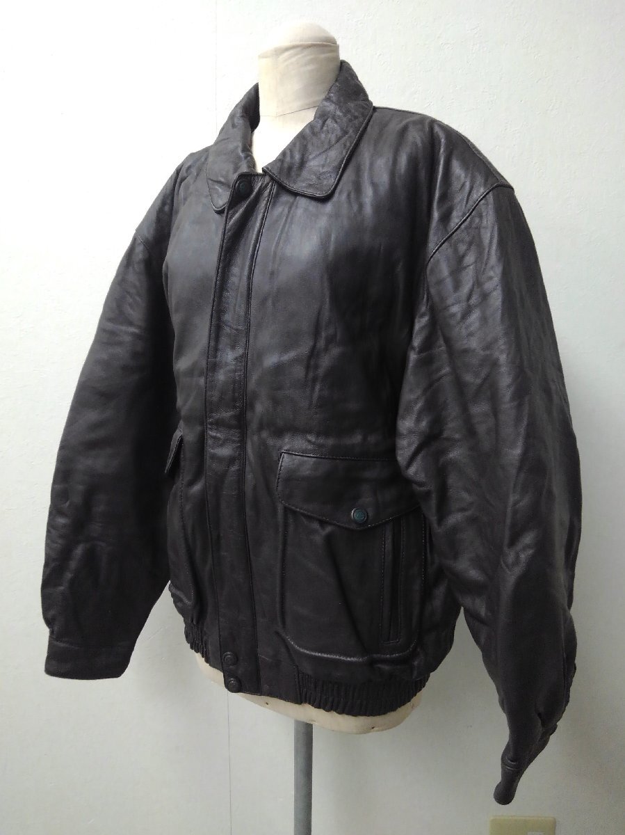 ★15―116★レザージャケット SUB URBAN LLサイズ/CiCi Lサイズ/レザーコート 本革 羊皮 ブラック ビンテージ 革ジャン[100]