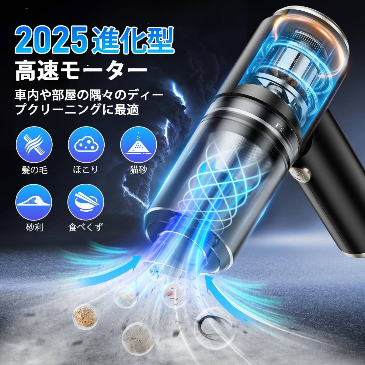 • 【25000Pa強力吸引】ボールベアリング式高速モーターを搭載したハンディ掃除機は、強力な吸引力で手にくっついて離れないので、髪の毛、隅のホコリ、食べ物の残りかす、タバコの吸い殻、足の汚れ、猫砂などを一気に取り除きます。独自のノイズ低減技術により、騒音は65デシベル以下に抑えられ、いつでも使用可能。頑丈なスナップ機構により、アクセサリーをしっかりと固定でき、落下の心配がないです。
