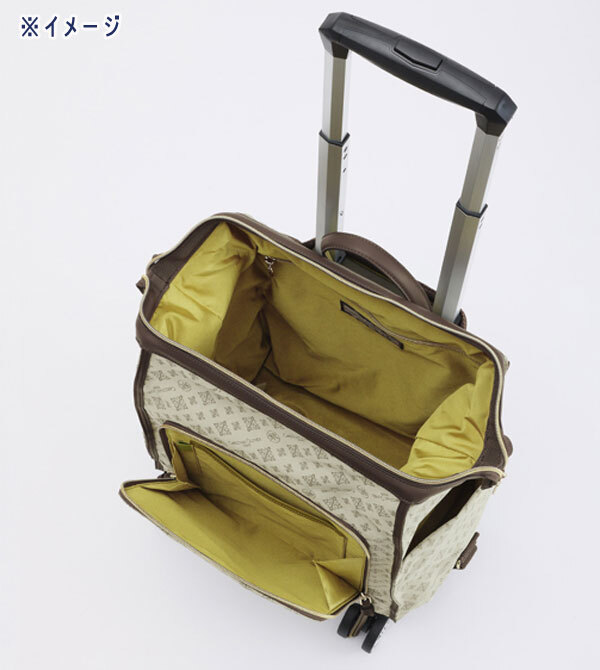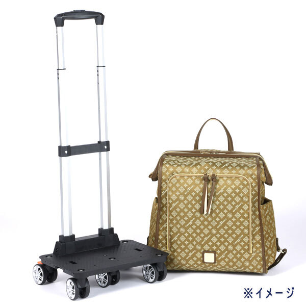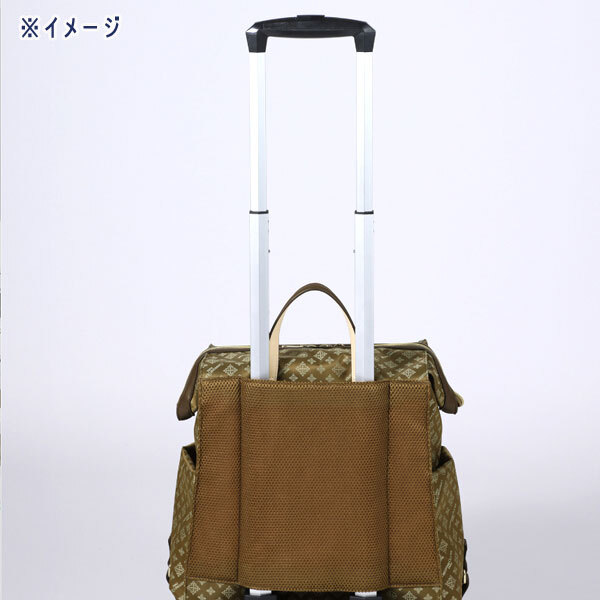 | 内 容 | ■クリスチャンオリビエ はっ水ジャガード がばっと口が開く、しまえる キャリーカート ニュアブラック ■サイズ ・カートサイズ:約32×24cm ・カート持ち手高さ:約80cm、88cm(2段階調節可能) ・タイヤ直径:約6cm ・バッグサイズ:約縦37×最大横34×マチ21cm ・ハンドル立ち上がり:約10cm ・A4サイズ:可 ■素材 ・外側:ポリエステル、ナイロン、合成皮革 ・内側:ポリエステル ・ハンドル:合成皮革 ・キャリーフレーム:アルミ合金 ■重さ:約2240g ■詳細 ・開口部:ファスナー ・ハンドル:あり ・ポケット(外側):オープン3個、ファスナー1個、ペン挿し1個 ・ポケット(内側):オープン2個、ファスナー1個 ・底びょう:0個 ◆参考価格 36000円相当 はっ水加工をほどこしたジャガード織生地を使用。 雨に濡れても水を弾きやすいため、お手入れしやすいのが特徴です。 ダブルファスナー仕様の開口部は、 芯材を使用して枠を作っているためがばっと大きく開き、 中身の出し入れがスムーズ。 安全面を意識して、 ファスナーの片側にはナスカン付きストラップを配しているため 引き手のロックが可能です。 本体とキャリーカートは脱着式になっているため、 取り外しができるつくり。 タイヤは安定性のある5輪仕様で、 360度全方向スムーズに動く構造。 後方2輪にはストッパー付きです。 キャリーカートは折りたたむことができ、 使用しない時は収納することが可能です。 |