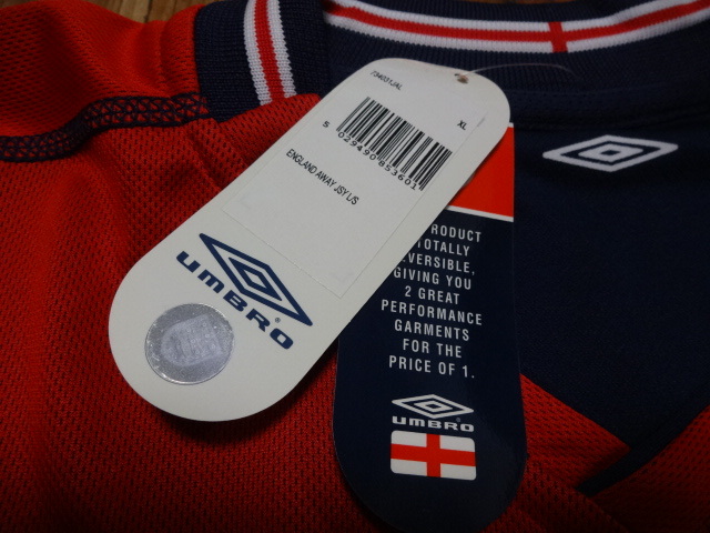 イングランド代表 正規品 ユニフォーム シャツ 2002 ワールドカップ アウェイ 長袖 XLサイズ 新品未使用品タグ付き