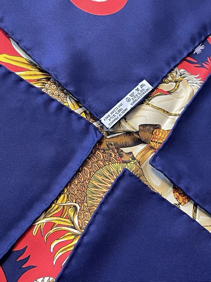 経年保管品になり、汚れ箇所はございますがスカーフ自体は使用感も少なく、色褪せも無く綺麗な商品になります。