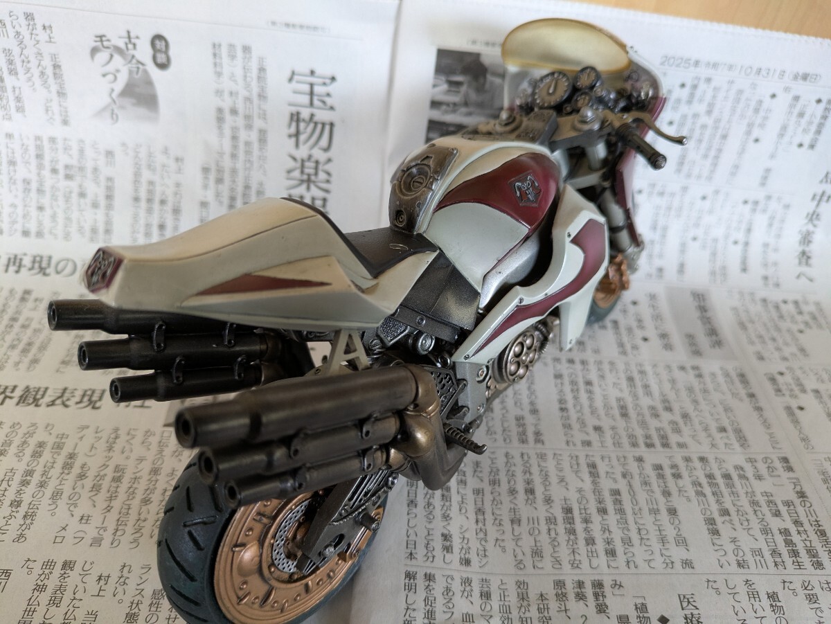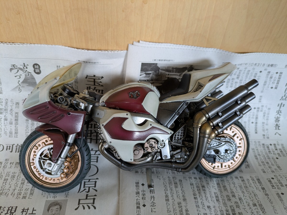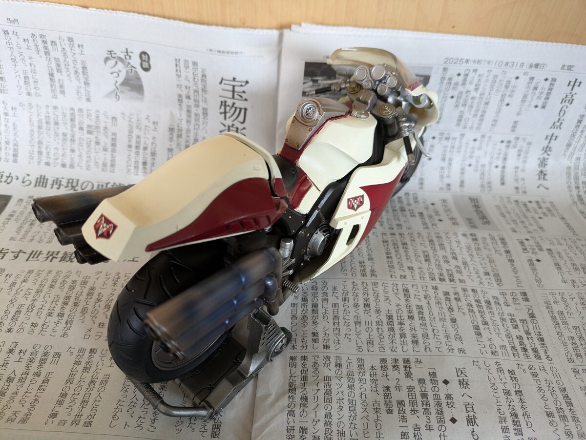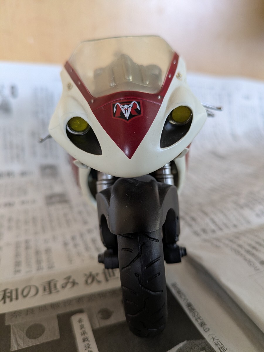 仮面ライダーはMOVIERealizationの2体。1号乗車のサイクロン号はs.i.cシリーズtheFirstの物。2号乗車の新サイクロン号は以前ヤフオクで購入した完成品ですがスタンドがやや短いためか倒れやすいです。ガラスケースで飾っていました。画像にあるものが全てです。