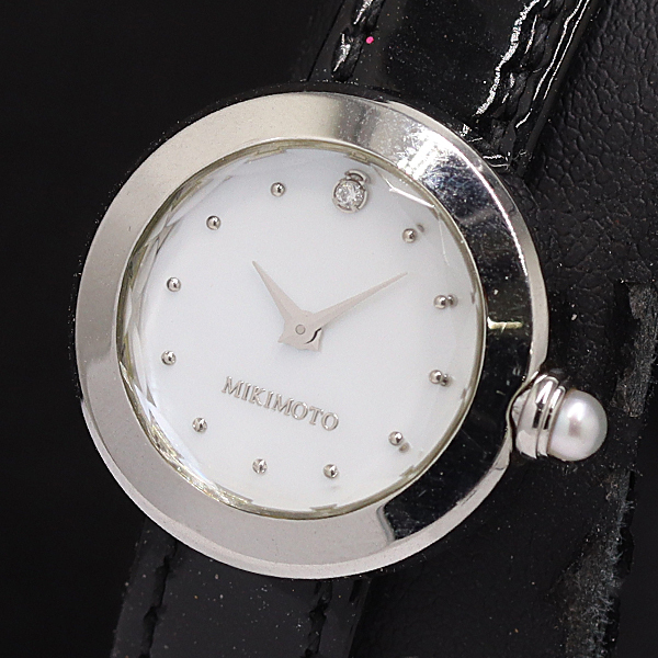 1円 稼働 ミキモト ラウンド 1PD QZ シェル文字盤 レディース腕時計 2908000 10NBG MST