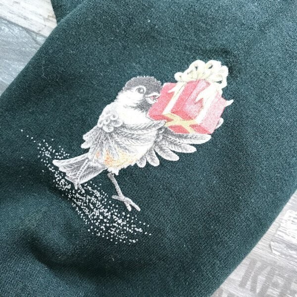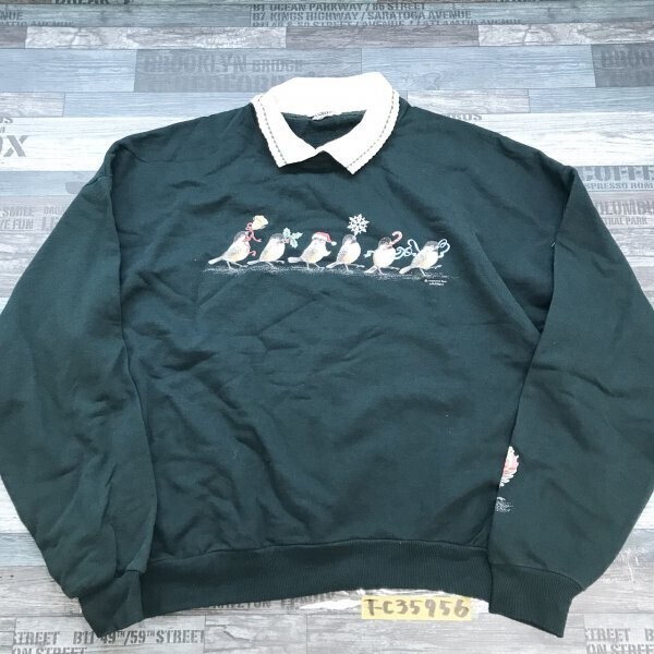 レディース 鳥プリント 襟付き トレーナー グリーン です。