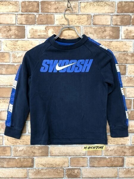 NIKE ナイキ ロゴプリント ラグランスリーブ スウェット トレーナー XS(120-130)紺