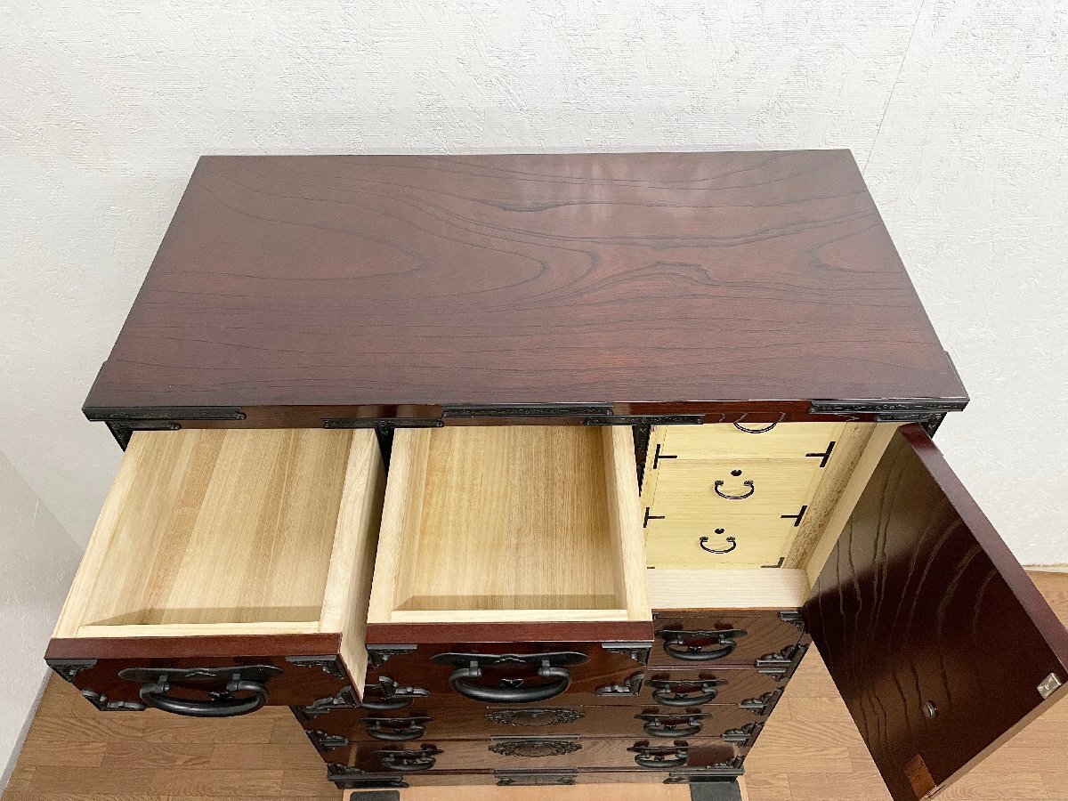 ◆民芸調 和箪笥 時代箪笥 整理箪笥 引き出し たんす 収納 和モダン 和家具 昭和レトロ 装飾金具 伝統工芸品 (貝1305)