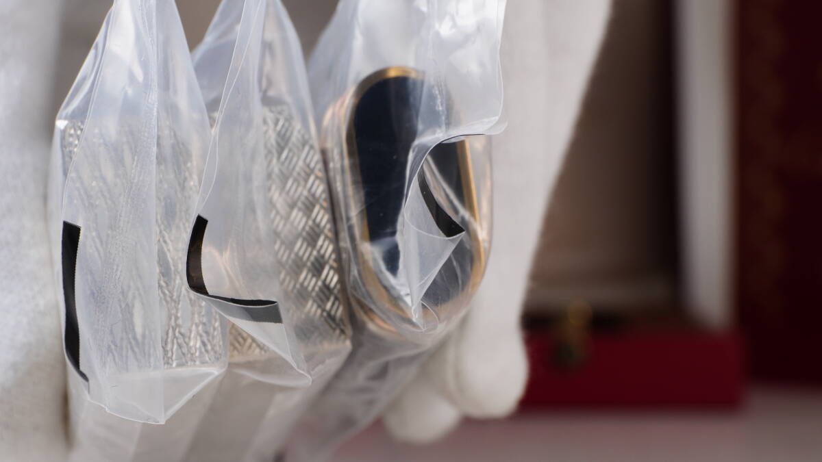 クラシックなシルバー彫刻モデル2本と、ブラック漆 × ゴールドのラウンドタイプ1本を組み合わせた構成。
