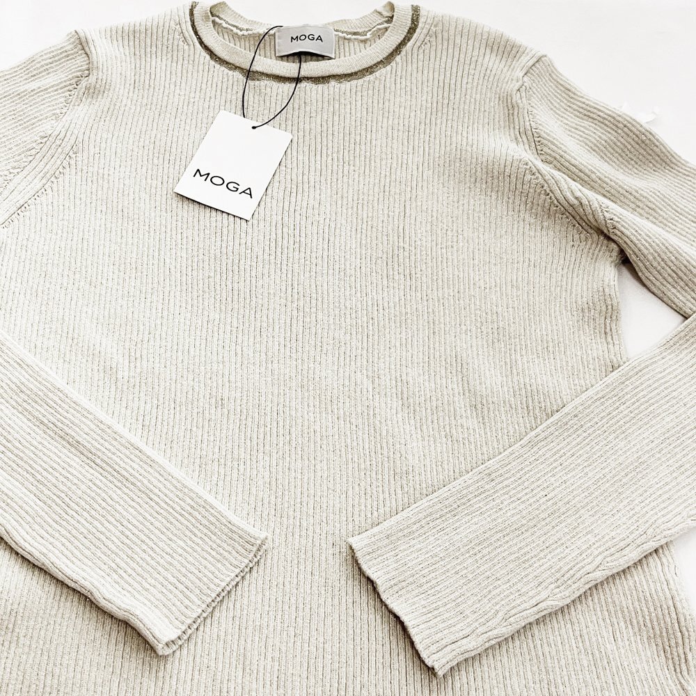| コメント | MOGAはベーシックかつ時代に沿った着こなしのできる、機能性がありながらデザイン性を追求、個性とセンスをさりげなく表現するブランドです。 カシミア混で柔らかく優しい肌触りの糸に上質な細番手のラメ糸で華やかさをプラスしたニットです。繊細なラメ糸なので肌触りがとても良くチクチクしないので、ラメ糸が苦手な方にも着ていただけます。2023年秋冬コレクションのお品と推測されます。 未使用のお品です。目に付く傷や汚れは見当たりません。とてもキレイです。ご理解のある方のご購入をお待ちしております。 |