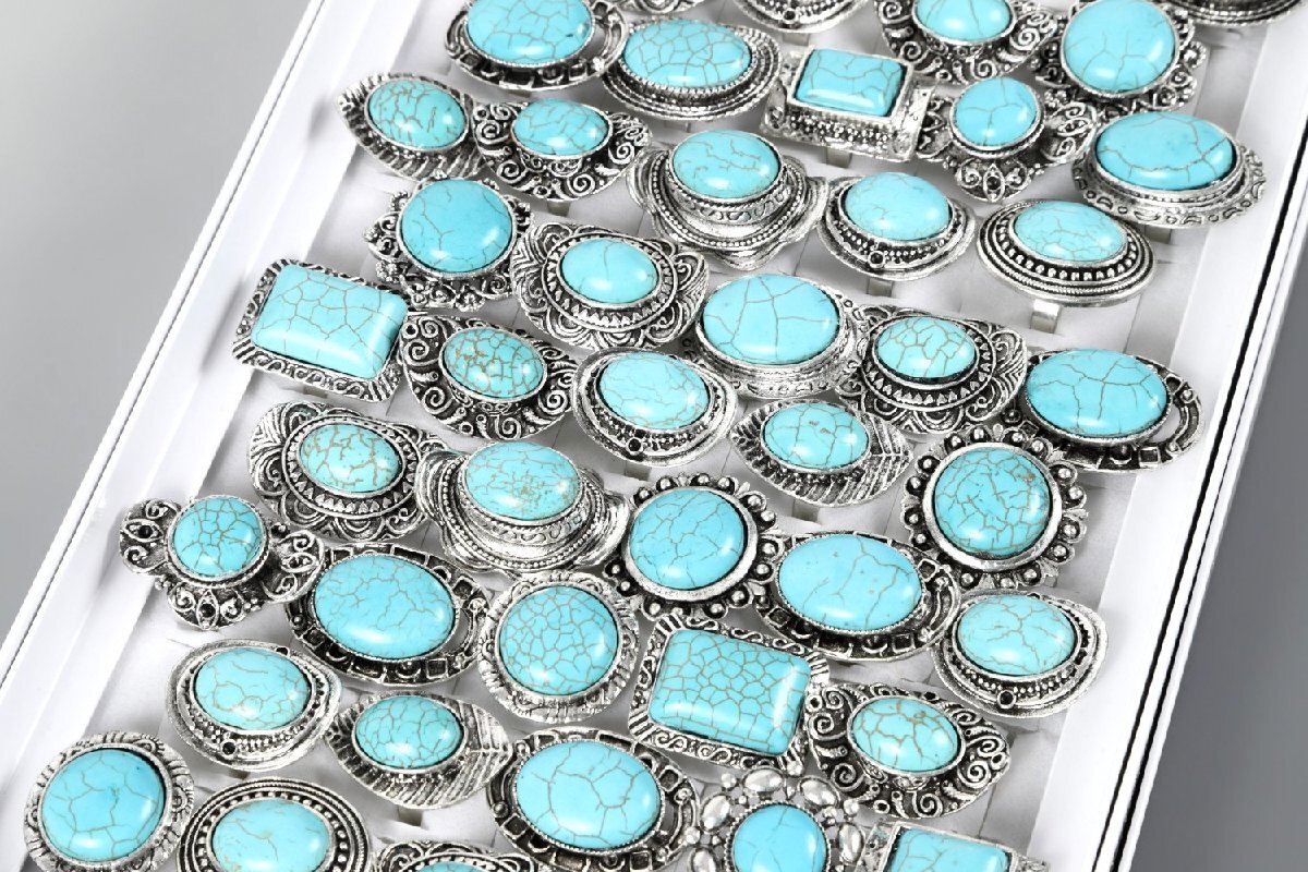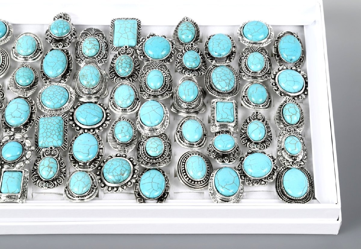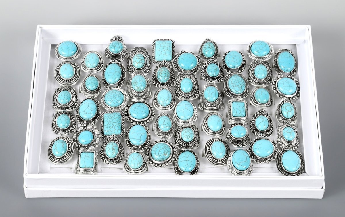 新品 天然石 ターコイズ 指輪 まとめて50点セット 天然石 ターコイズのファッションリング 50点セットです。 艶、色味ともに非常に美しいものです。 指輪のデザインは写真を参考にしてください。 商品は写真のように指輪のデザインをランダムに50点選んで発送いたします。 (選ぶ際には偏りがないようにいたします。場合によっては写真にはないデザインになることもあります。) サイズ:フリーサイズ 石材質:ターコイズ(=トルコ石) 個数:50点 ※写真のようにケースに指輪50点を収めた状態で発送いたします。 (ケースはロットによってデザインやカラーが違う場合があります。) ※ケースはおまけとして出品しますので、ケースの不具合に関しては対応はできません。 当店の他の出品商品との同梱料は下記のとおり落札1点につき200円です。 |