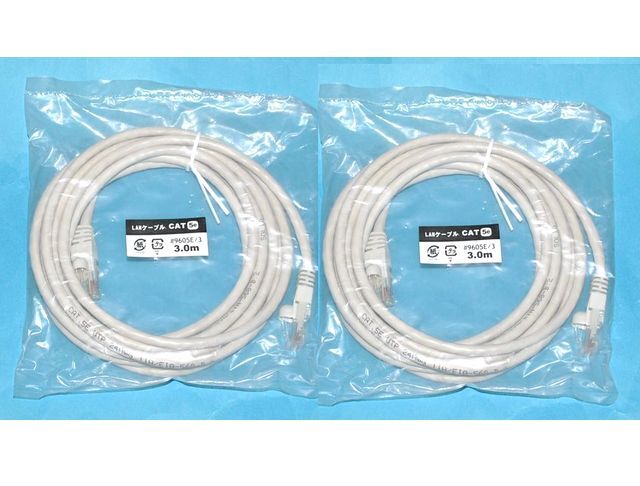 ネコポス無料!新品 LANケーブル 3m CAT5e 2本セット ツメ折れ防止 ライトグレー・LA-5EG3M x2