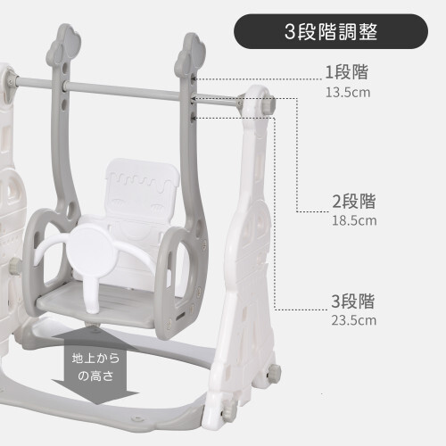 • ★ブランコ三段階調整可能★1段階13.5cm、2段階18.5cm、3段階23.5cm;お子様の身長によって高さを調整することができます。