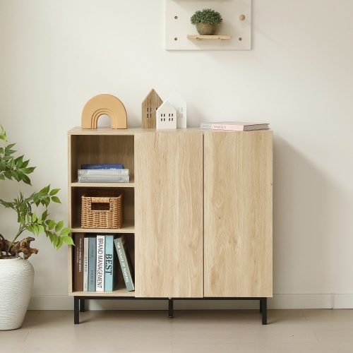 • 【「隠す&魅せる」収納が実現する木目調キャビネット】木の温もりが感じられる木目調キャビネットが登場しました。シンプルて洗練されたデザインで、隠したいものを収納し、オープンスペースにはディスプレイしながら魅せる收納をしていただけます。