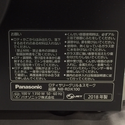 美品 パナソニック NB-RDX100 ロティサリーグリル&スモーク ブラック 未使用品 開封品 保存箱付き Panasonic |