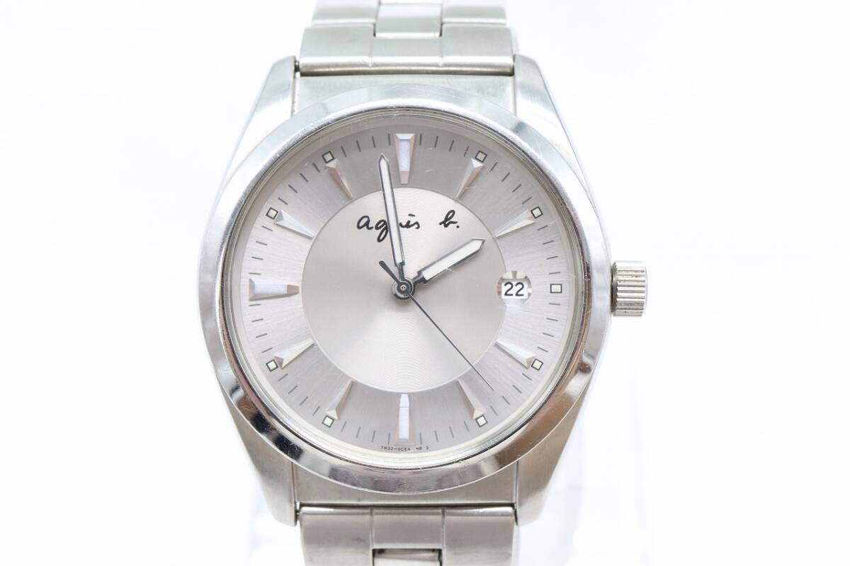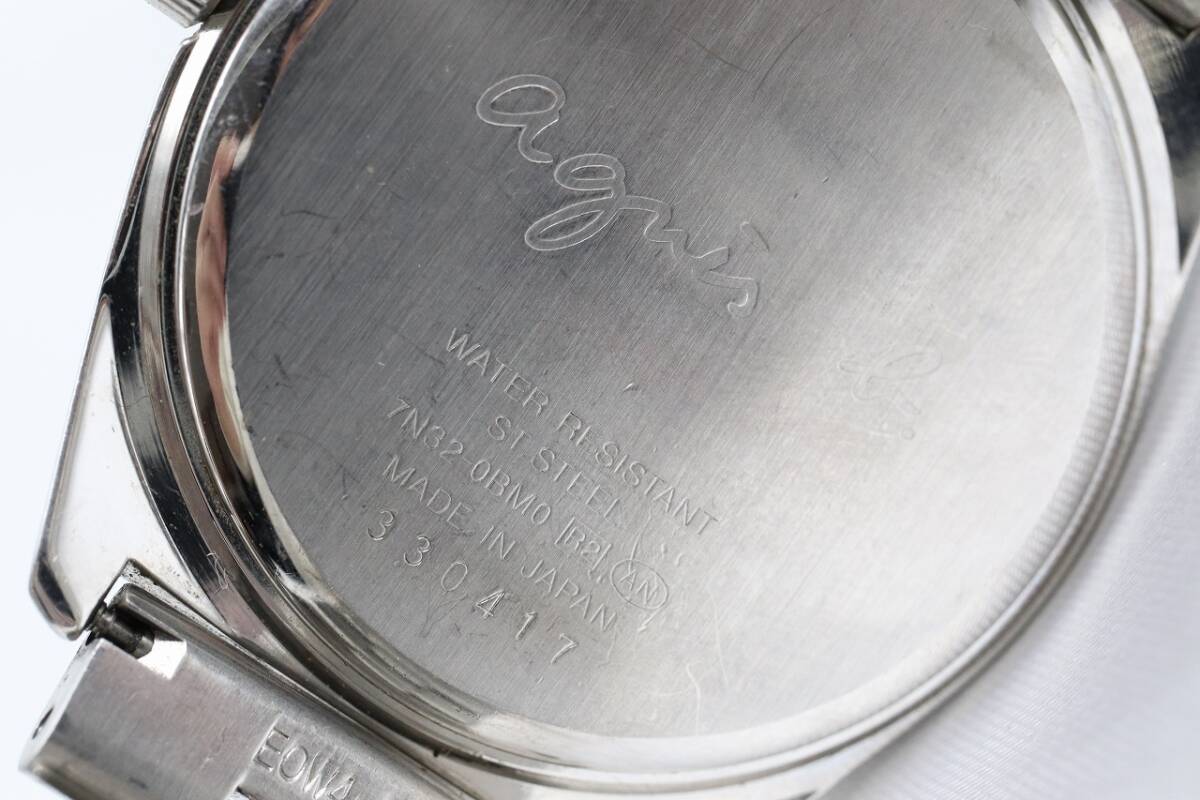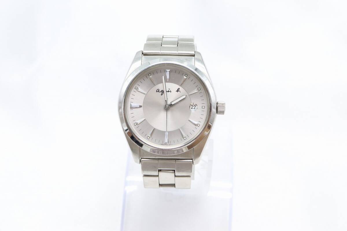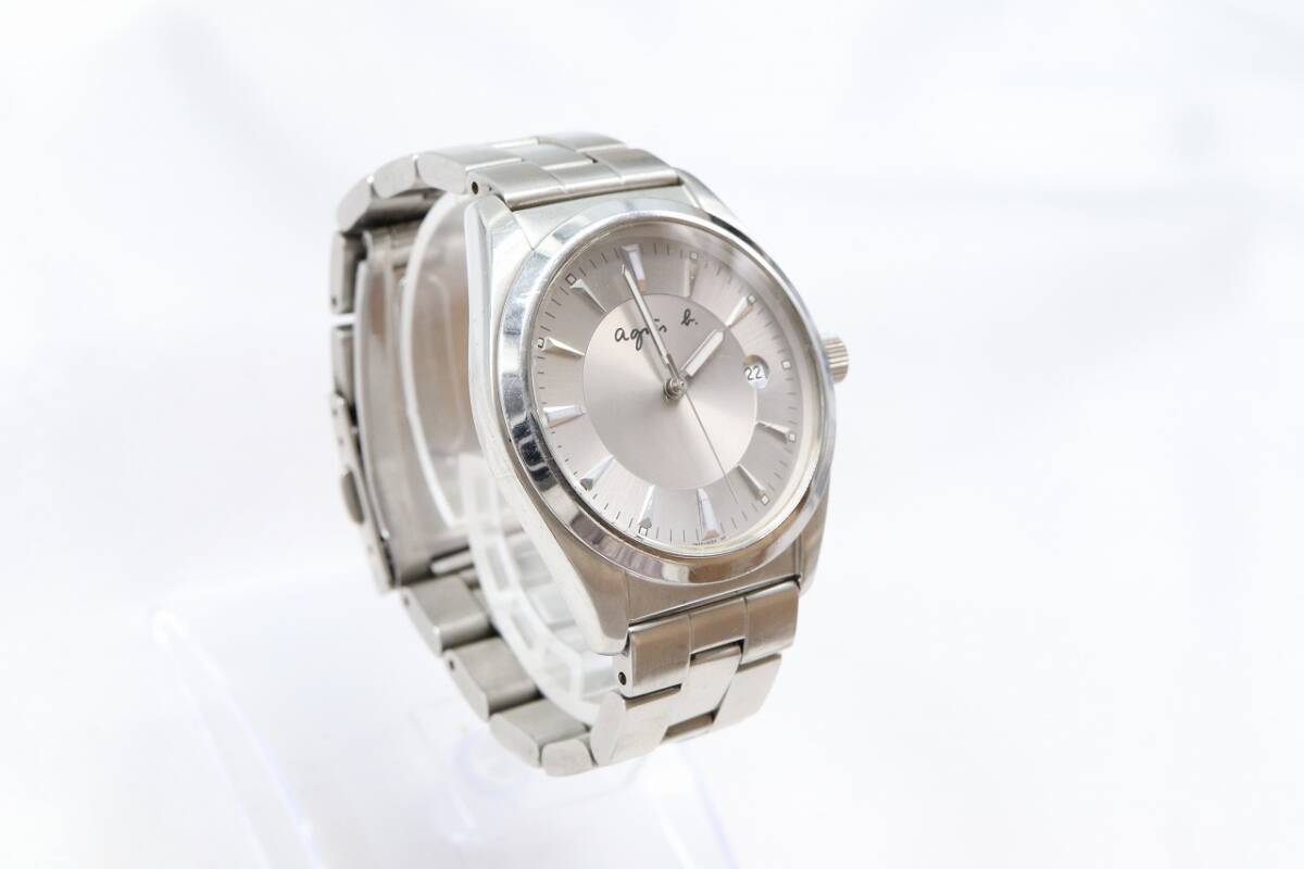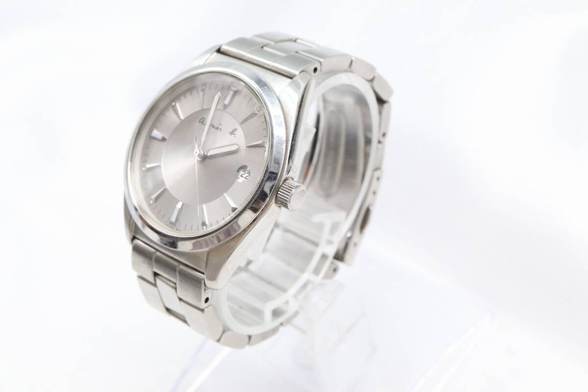 【W260-38】★腕周り細い★動作品 電池交換済 agnes b. アニエスベー デイト 腕時計 7N32-0BM0 メンズ【送料全国一律185円】