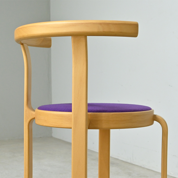 フレームにはビーチ材、座面の張り地にはパープル系色のファブリックが使用された、爽やかな印象の組み合わせです。