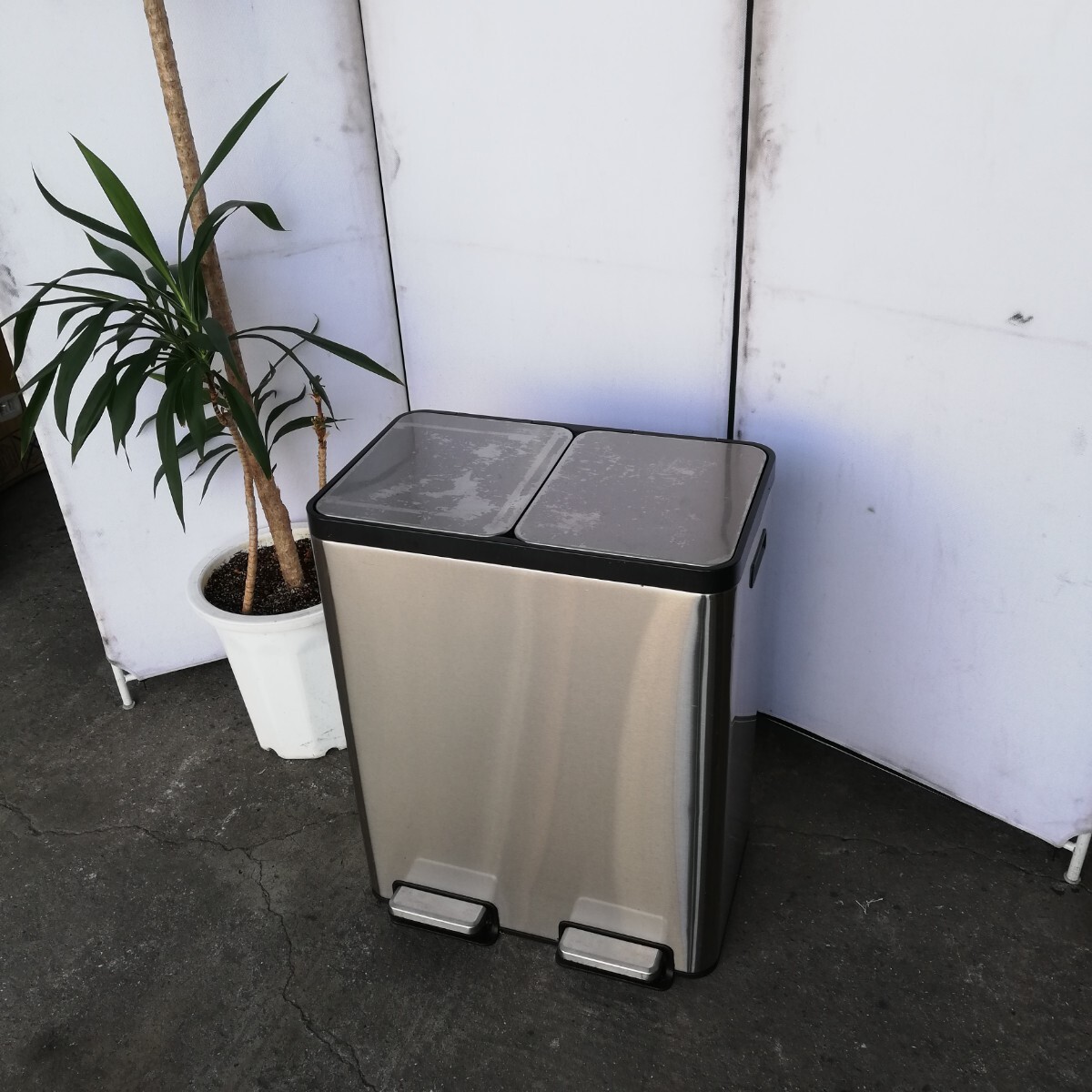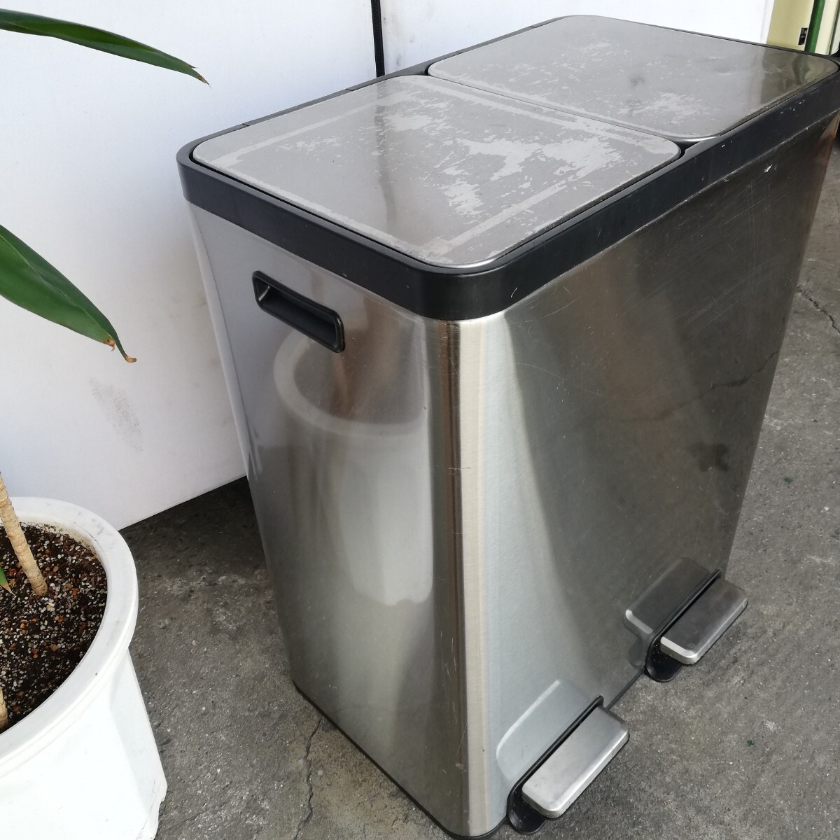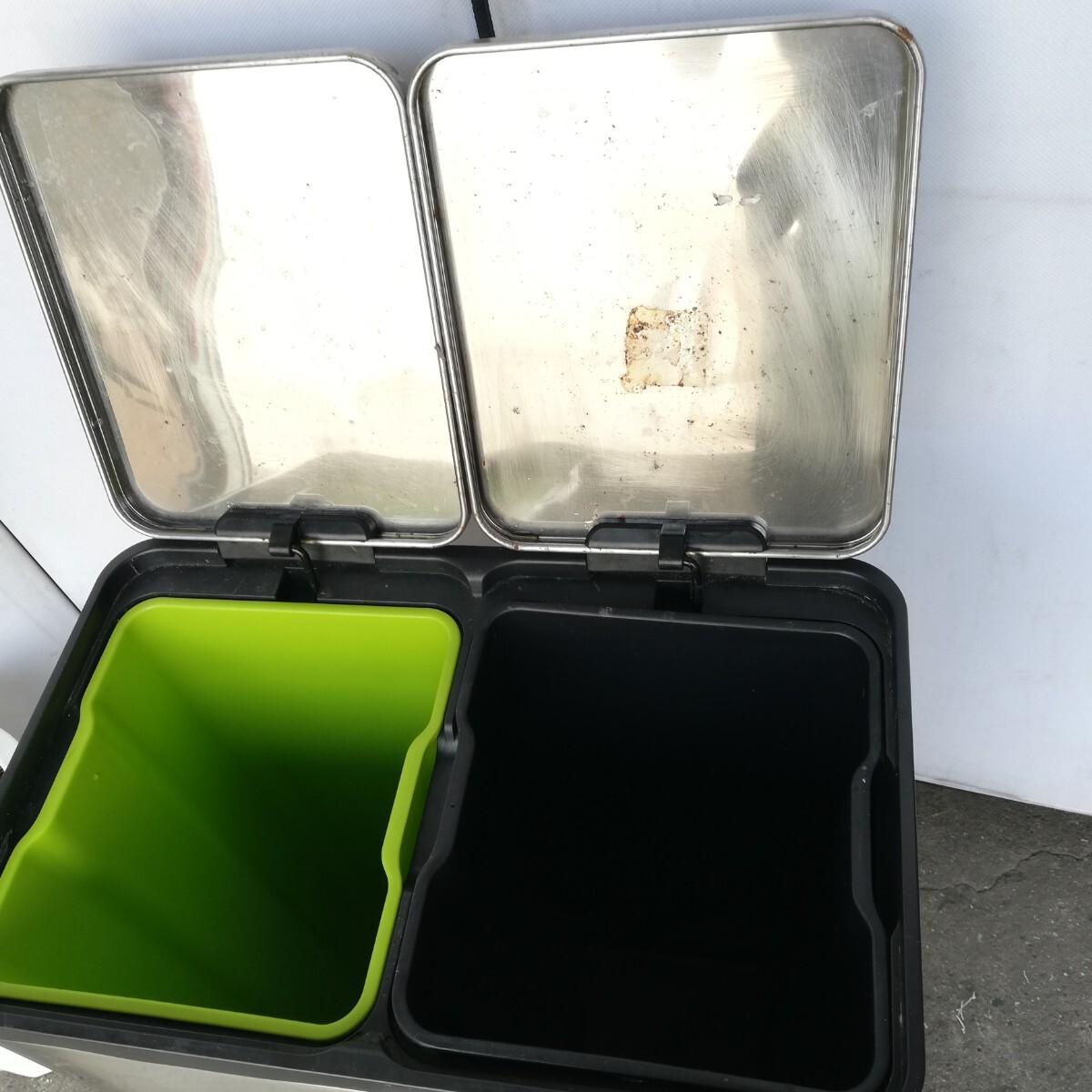 管10(中古現状、東大阪市渋川町引取限定) ゴミ箱 30L×2個 ステンレス 蓋付き ペダル式 ステンレスダストボックス
