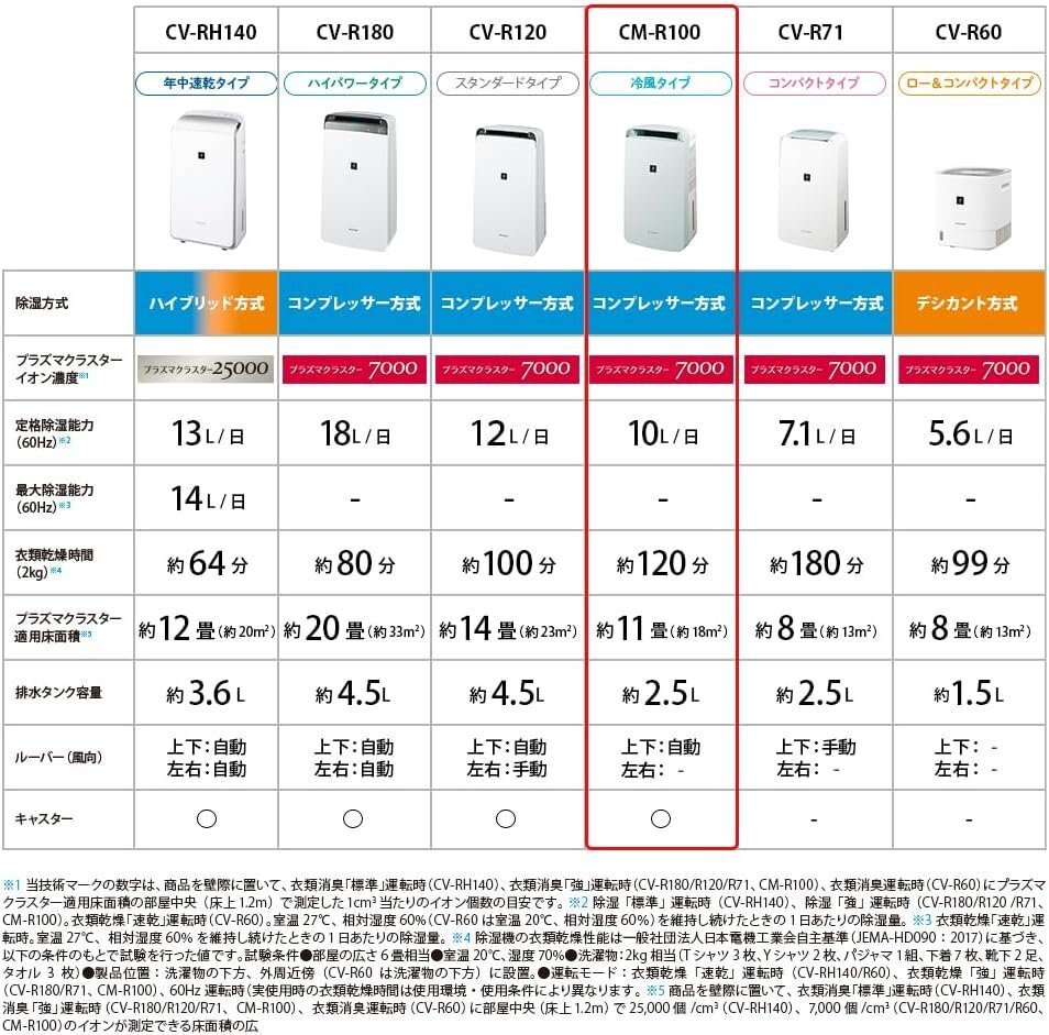 シャープ 冷風 衣類乾燥除湿機 CM-R100-W プラズマクラスター 7000 10L/日 11畳 可変スイングルーバー キャスター付 保証有