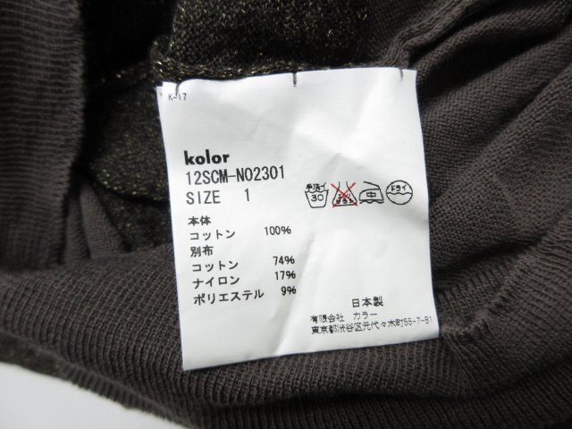 美品【kolor カラー】12SCM-N02301 コットン100% 生地切替 ハイゲージ ニットカーディガン (メンズ) size1 ブラウン系 ◇35MN6152◇