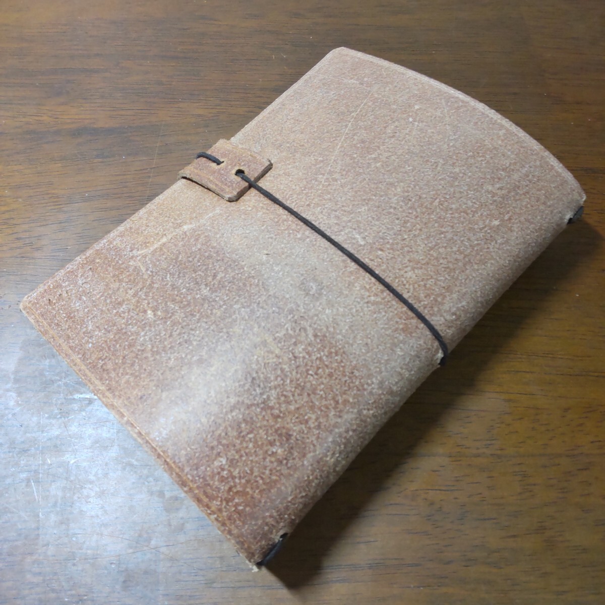 英国Jベイカー社フルグレインブライドルレザーの床革にて製作しました汎用A6サイズノートカバーです、シンプルに一枚革で製作しました。