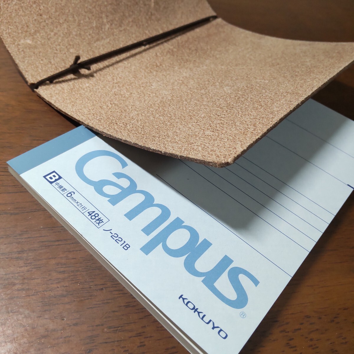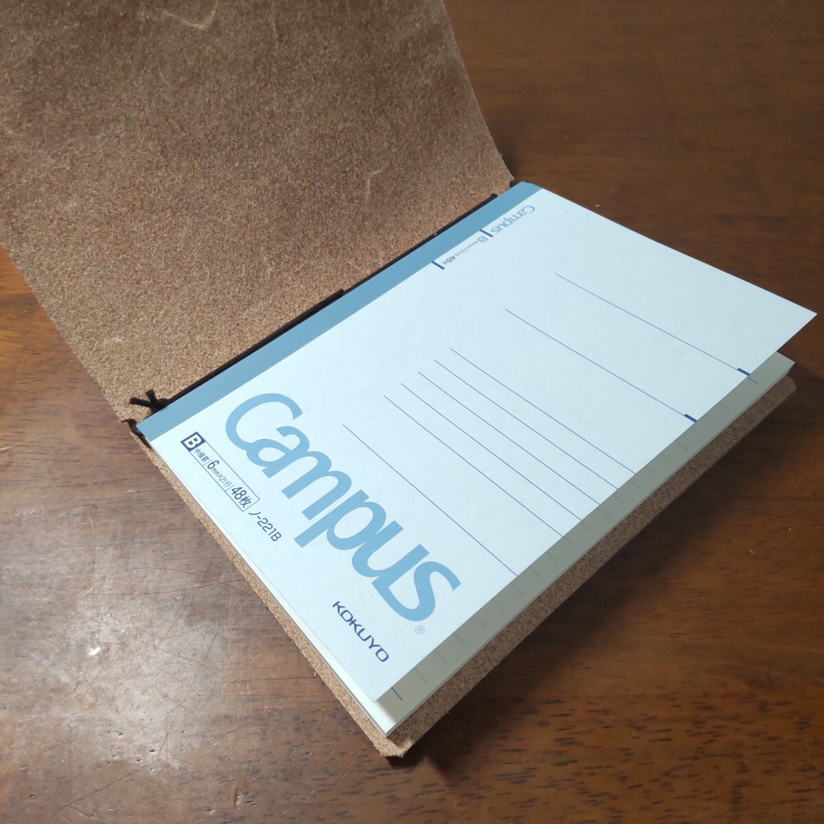 トラベラーズノートの様にゴムでノートを取り付け使用します、携帯性を考慮してコクヨCampusA6ノート一冊分のサイズに絞り込んであります。