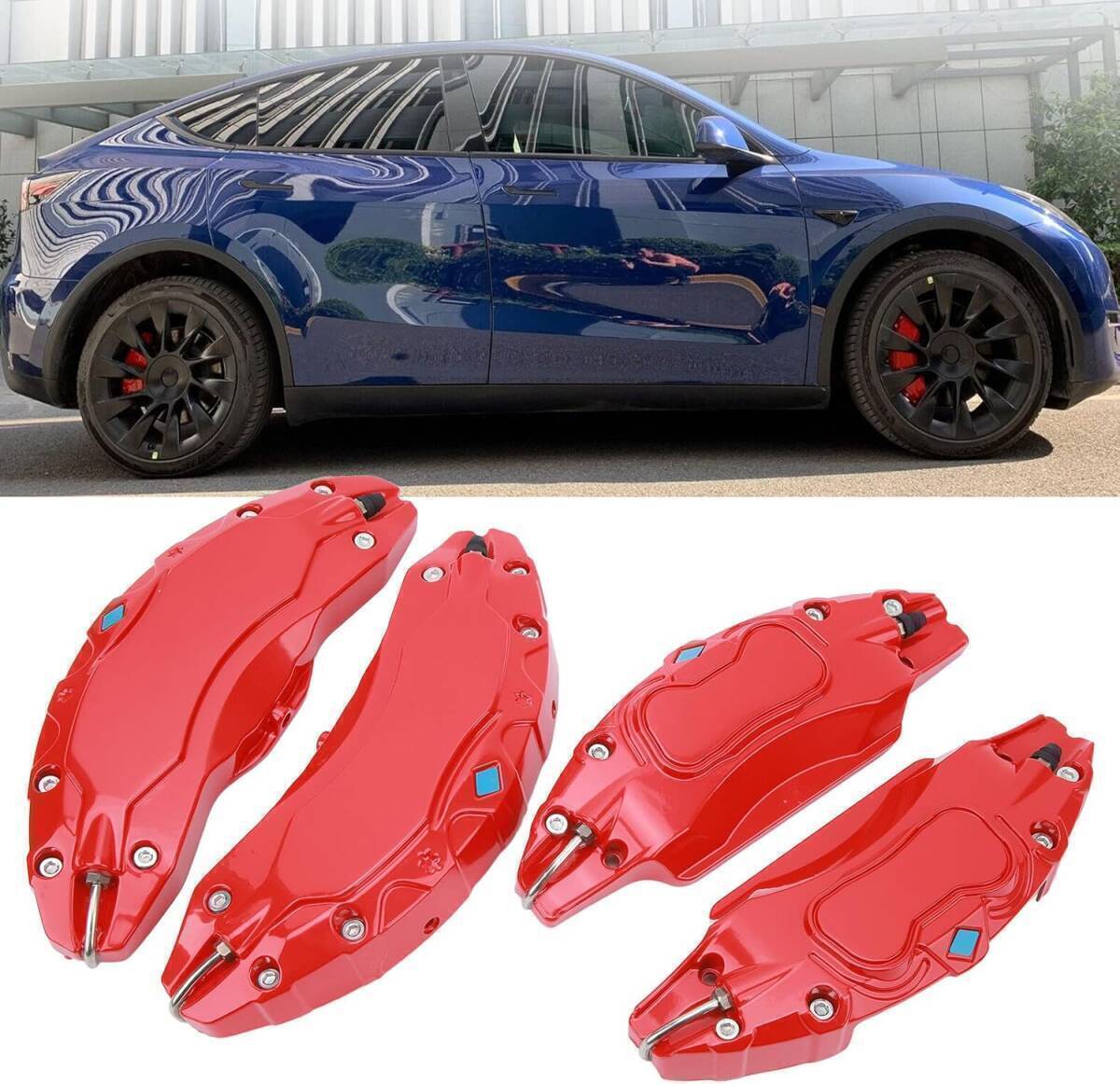 送料無料 キャリパーカバー レッド 新品 未使用 アルミ合金 19インチ ホイールハブキャリパーカバー 4個セット モデルY用