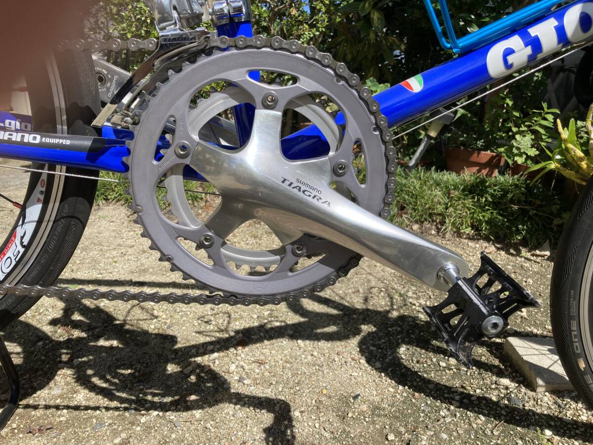 ギアは2×9速 フレームサイズは48サイズ 材質はクロモリ168cm前後の方に対応のようです。