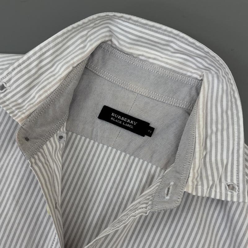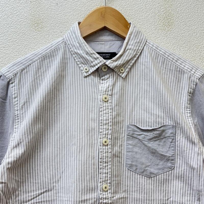 バーバリーブラックレーベル D1M28-323-06 ストライプ 無地 切替し ロゴ 刺繍 ボタンダウンカラー 半袖 シャツ 2