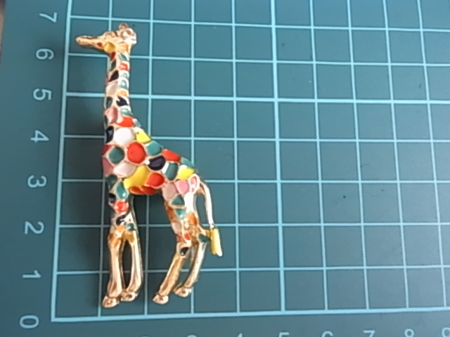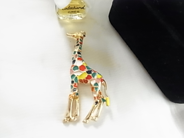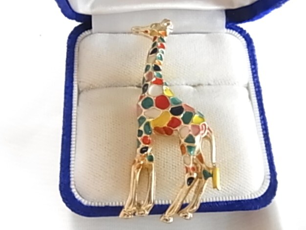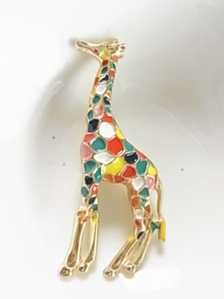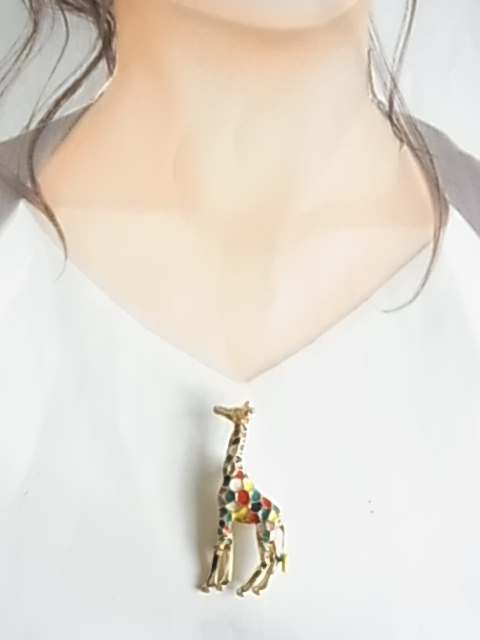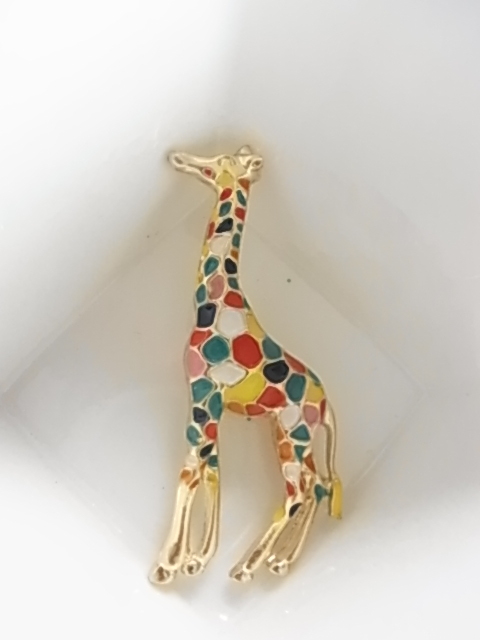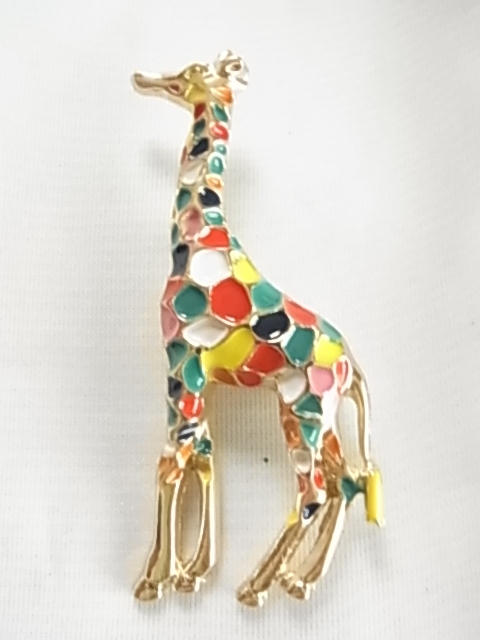 新品未使用品 カラフルな色使い キリンのモチーフ きりんさん 麒麟 動物 アニマル 遊び心のある素敵デザイン 金色トーンブローチ♯