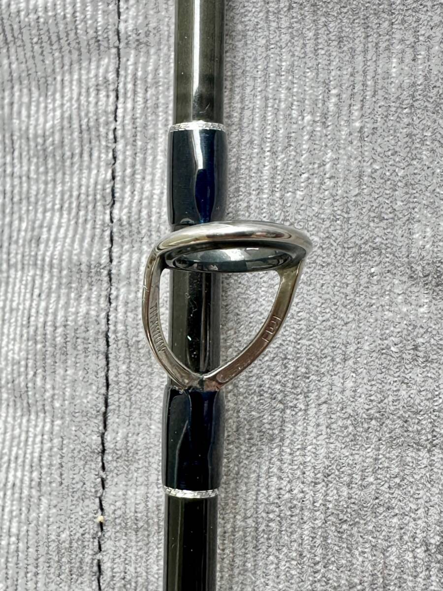 グリップエンド、トリガー先端に塗装剥がれとティップセクションの一番下のガイドの上に爪が引っかかるくらいの擦り傷、リールシートに小さな傷があります。