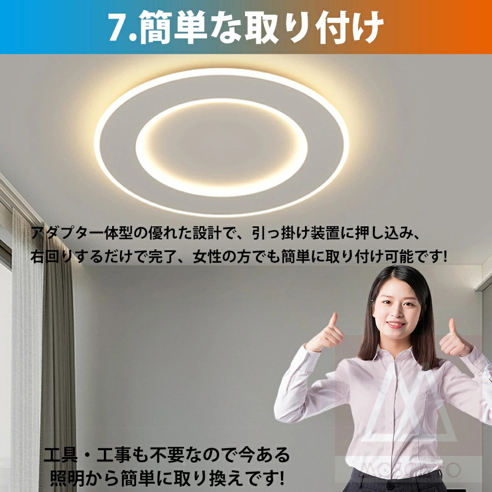 簡単な構造と簡単な取り付け。引掛けシーリング対応。