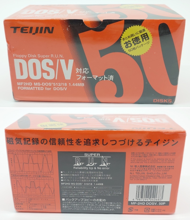 TEIJIN 帝人 3.5インチ フロッピーディスク 2HD DOS/V対応フォーマット済 MF2HD MS-DOS 512/18 1.44MB お徳用 50枚 パッケージ 未開封
