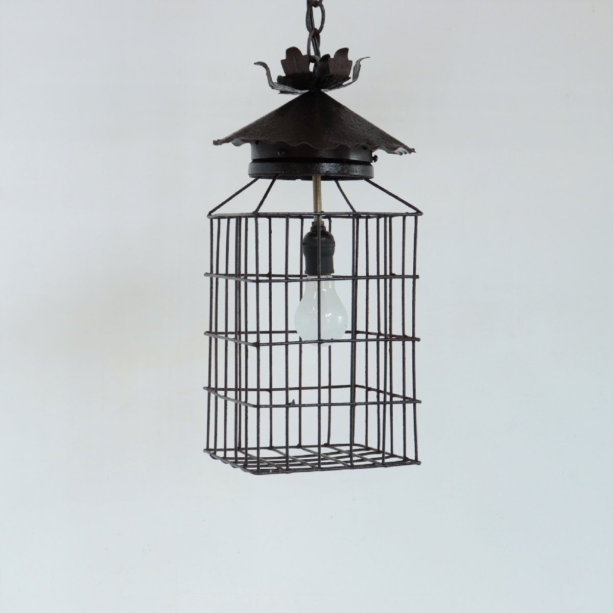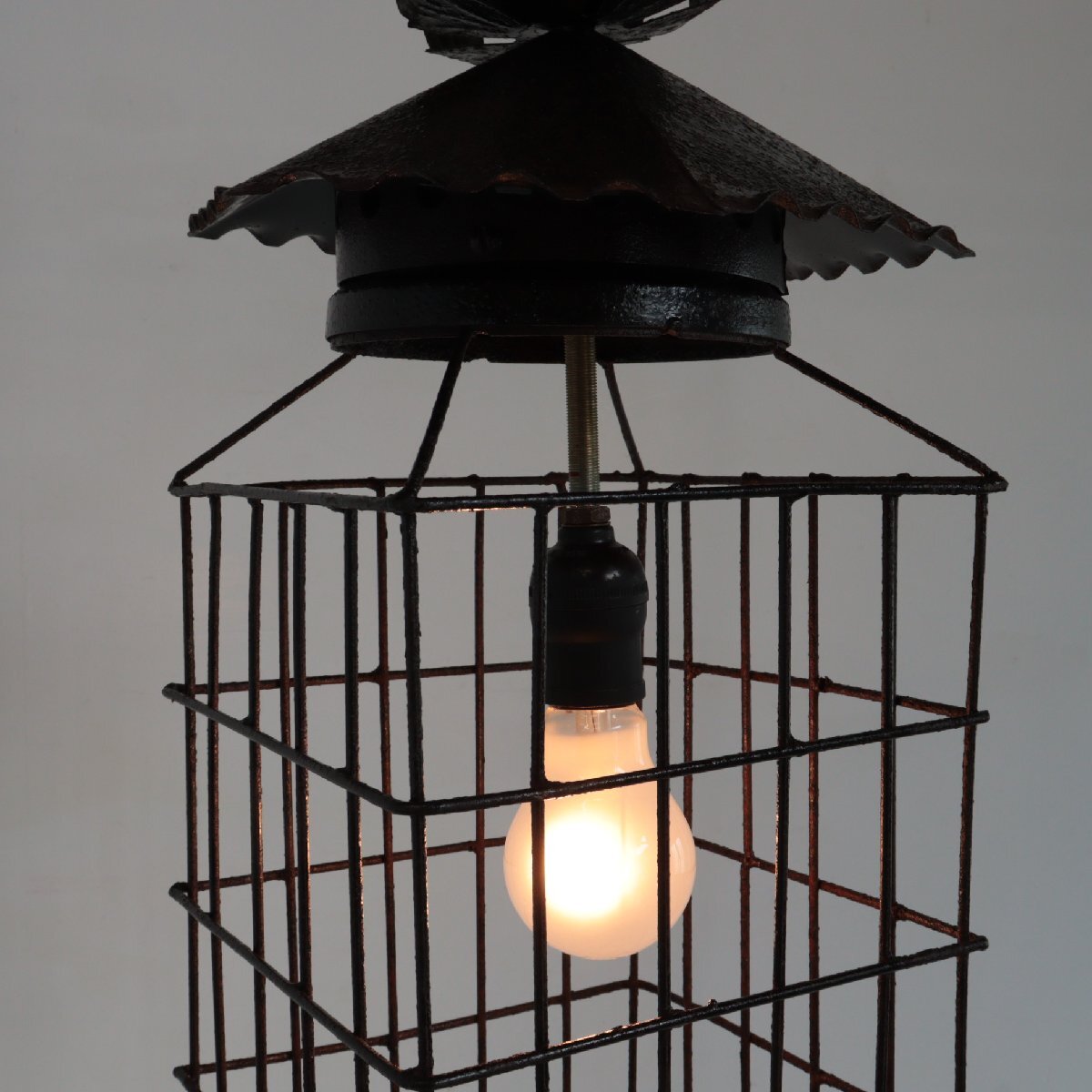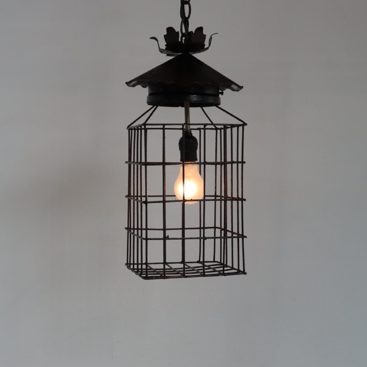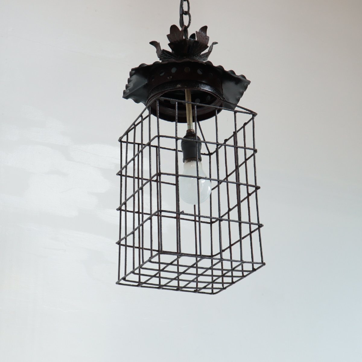 | 商品説明 explanation | アメリカで使用されていた、ブラックワイヤーのペンダントランプです。 まるで鳥かごのようなフレームが個性的なデザインです。 経年による風合いがヴィンテージらしい雰囲気になっています。 ご家庭のインテリア、店舗にいかがでしょうか |