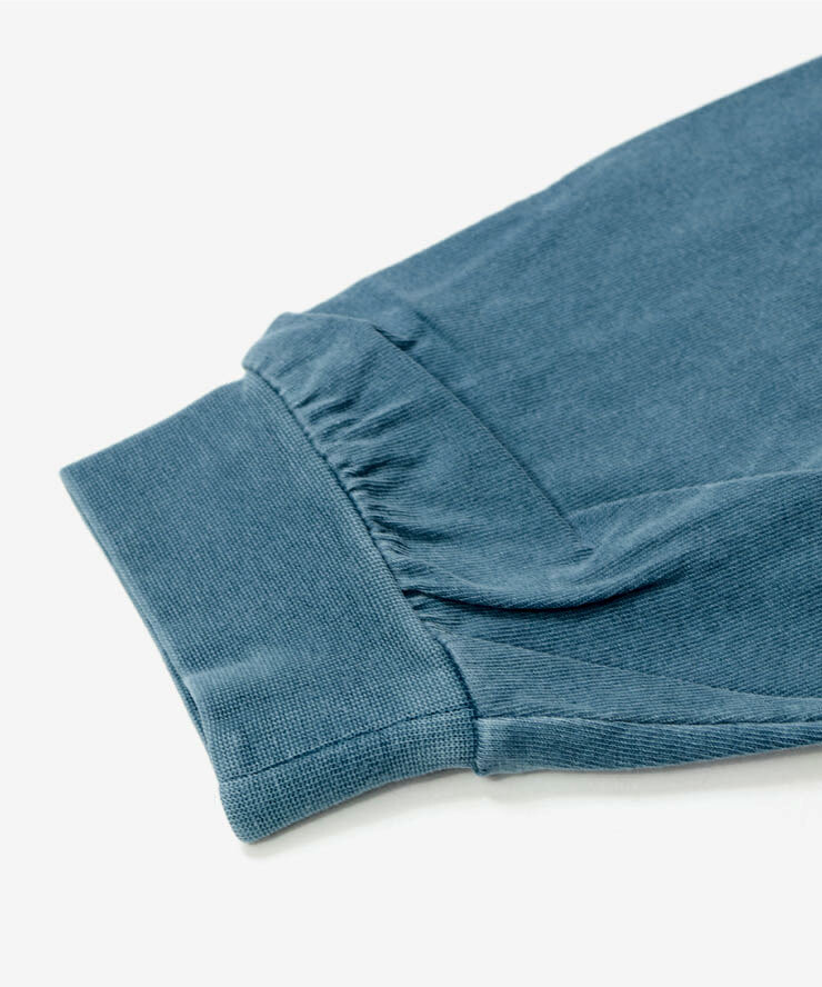 生地にはピグメント加工を施し、着込むほどに味わいが増すヴィンテージライクな風合いが魅力。程よいゆとりのあるシルエットで、1枚でもレイヤードでも着やすい万能アイテムです。袖口はリブ仕様になっており、袖をたくし上げてもスタイルが崩れにくく実用性も◎。