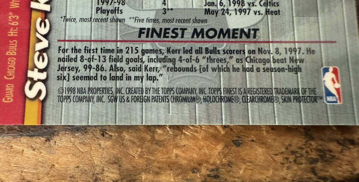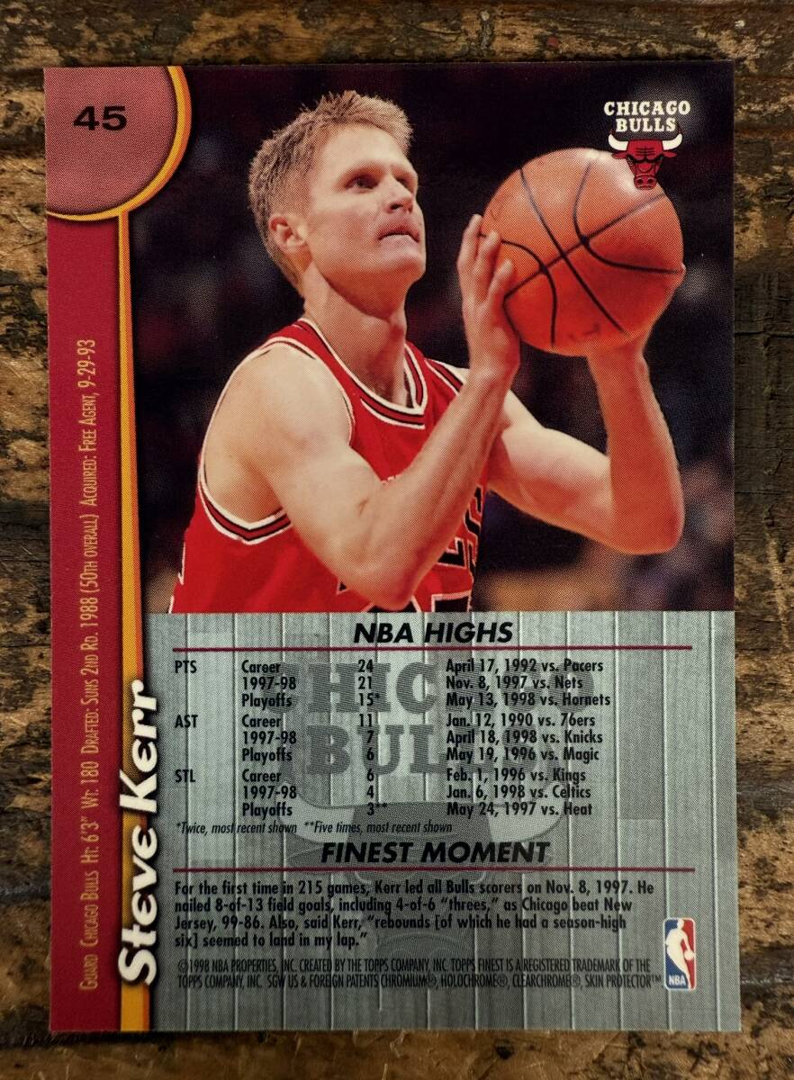 ★1998★TOPPS★FINEST★STEVE KERR★CHICAGO BULLS★スティーブカー★ブルズ★#45★NBA★バスケ★トレカ★1★
