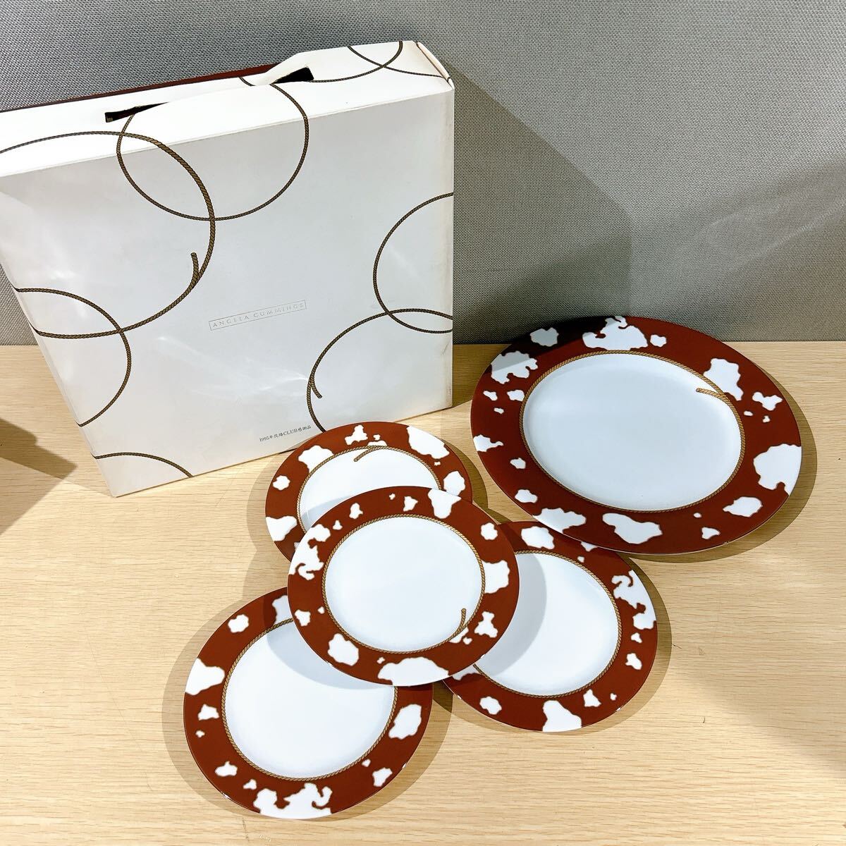【未使用/保管品】非売品 資生堂花椿クラブ ノベルティ お皿 5枚セット 小皿 大皿 丸皿 アンジェラ・カミングス プレート