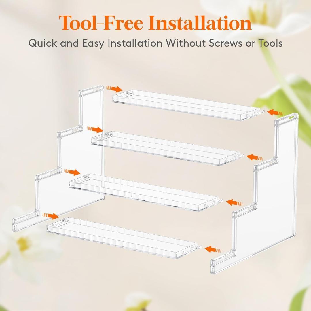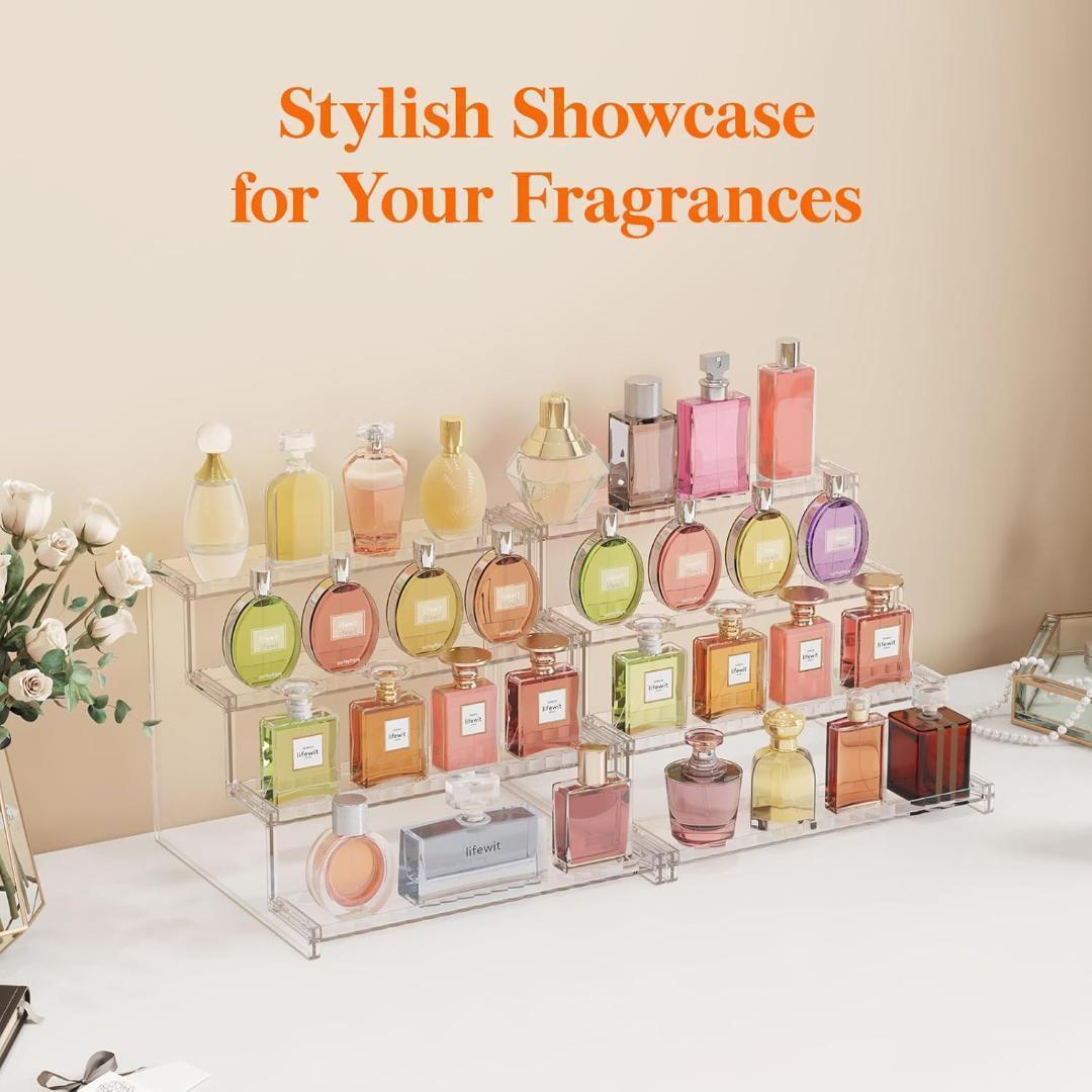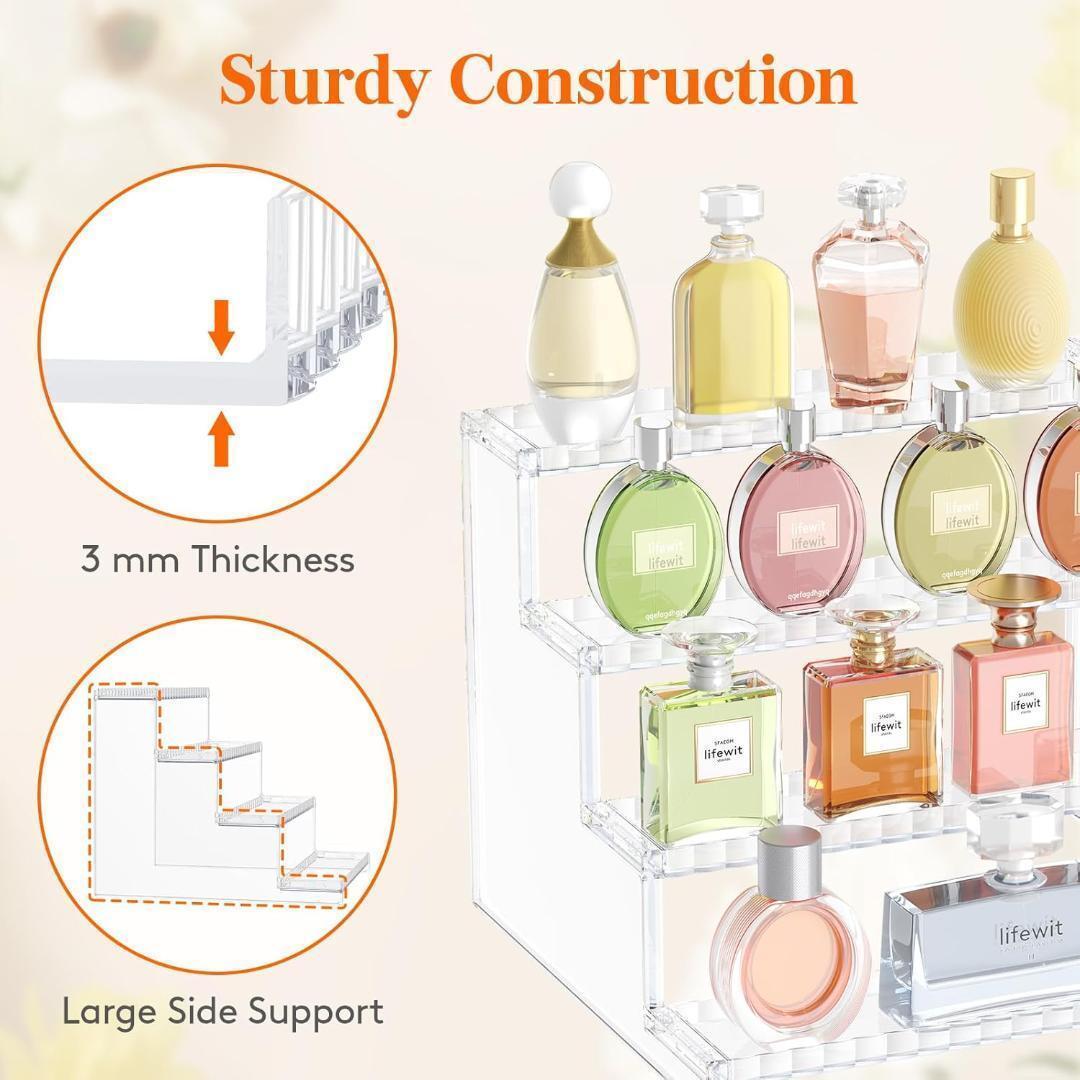 香水オーガナイザーの選択:この装飾フェンス付きの4段香水スタンドは、香水を簡単に整理して展示し、化粧台のスペースを利用しながら化粧台の美しさを高め、簡単にアクセスできるようにします。