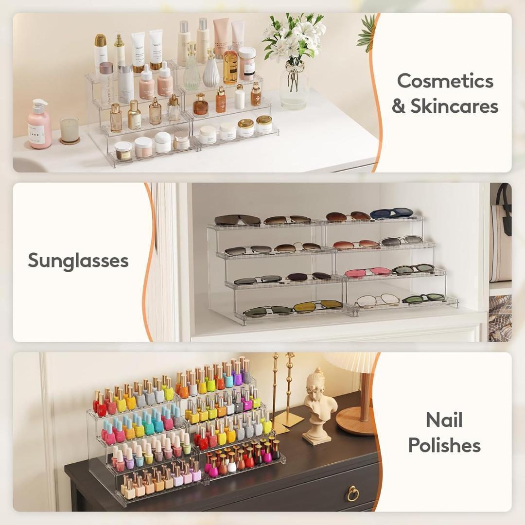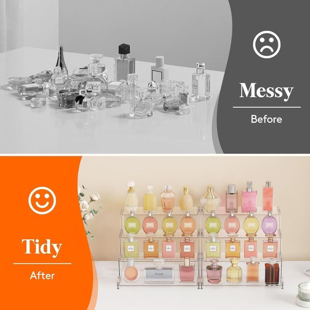 【万能収納】香水ディスプレイは化粧品、スキンケア製品、サングラス、マニキュア、収集品など、さまざまなアイテムを収納でき、多様な収納ニーズに適応し、洗面化粧台に多目的に追加できます。