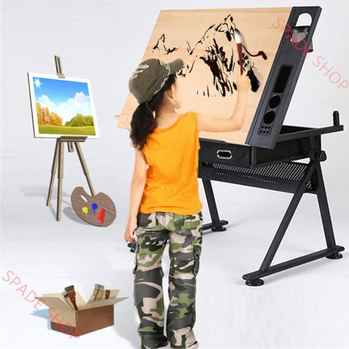 *強力な収納機能:2つの取り外し可能な引き出しは、描画ツールやその他のアクセサリの収納スペースとして機能します。ペンホルダー、ビルトインアートトレイを使用して設計されているため、手が届く範囲で物資をすっきりと安全に保つことができます。ファイル、本、雑誌などを保管するための下部の棚も備えています
