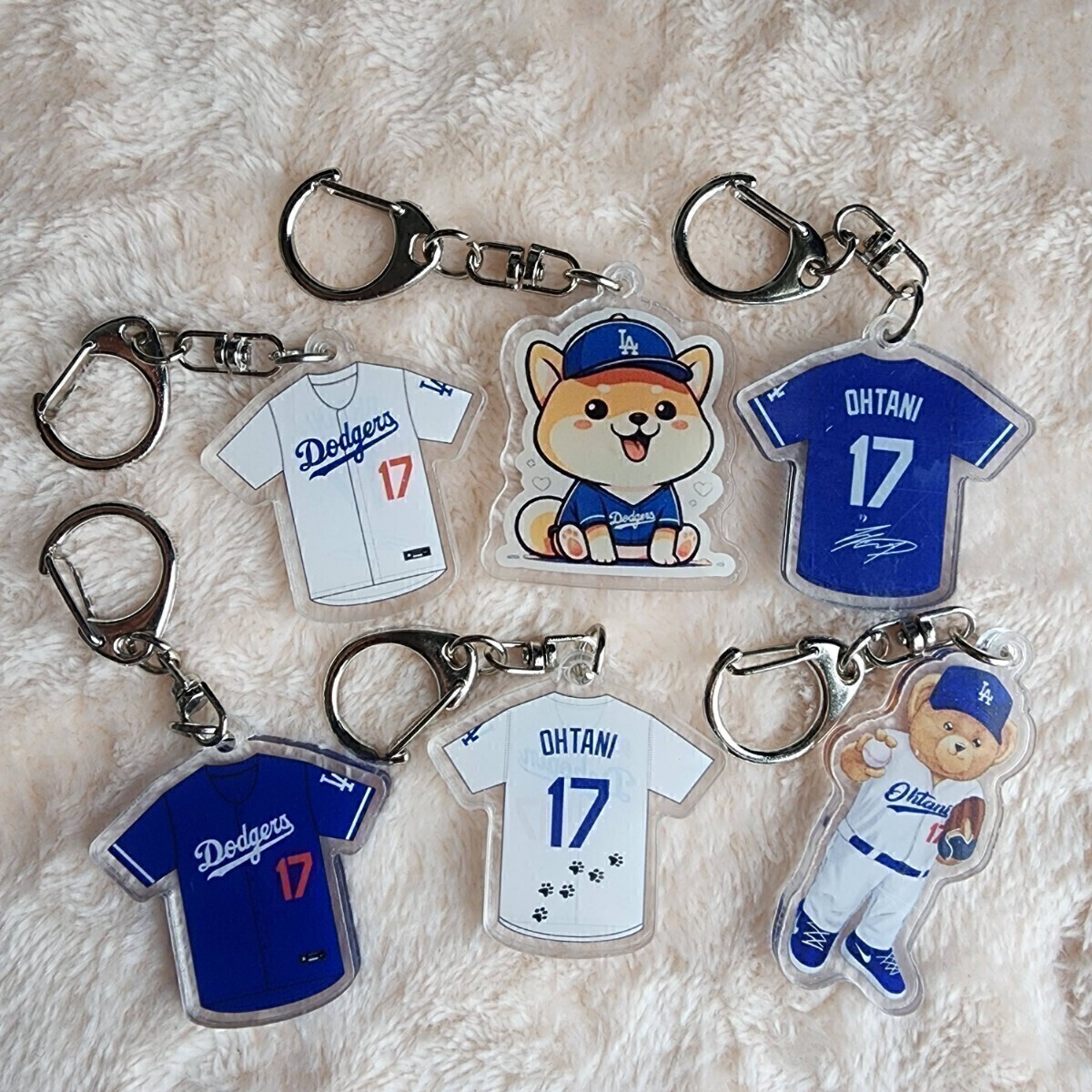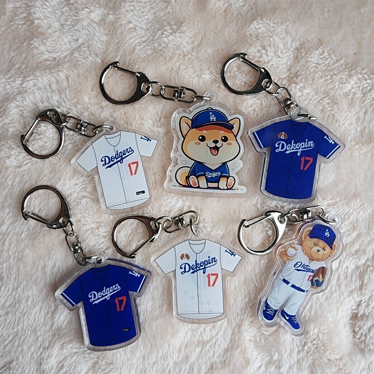 新品 ロサンゼルス・ドジャース 野球 ユニフォームキーホルダー デコピン 大谷翔平 可愛い キーホルダーセット ポロベア 直径4cm キーリング 6点セット