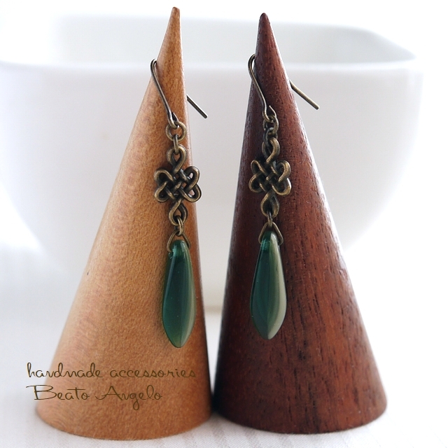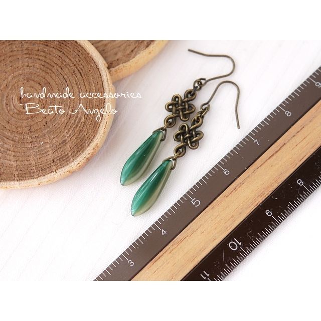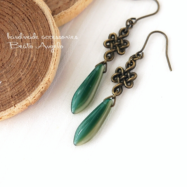 チェコダガーと網目のピアス(p-206)グリーン&ベージュ AG