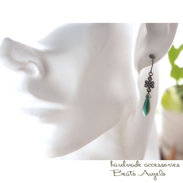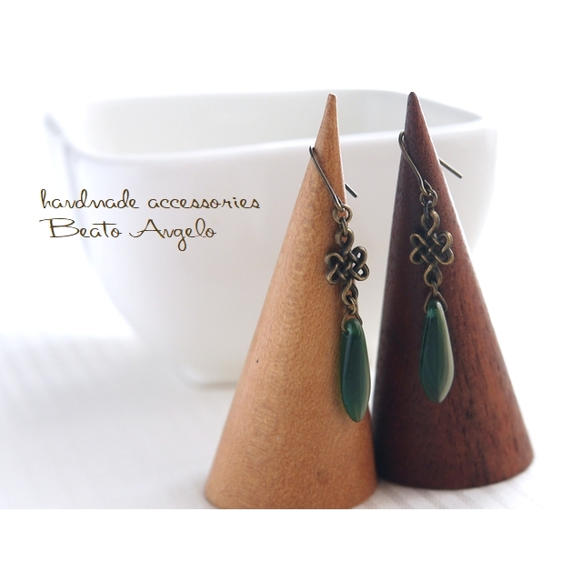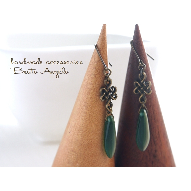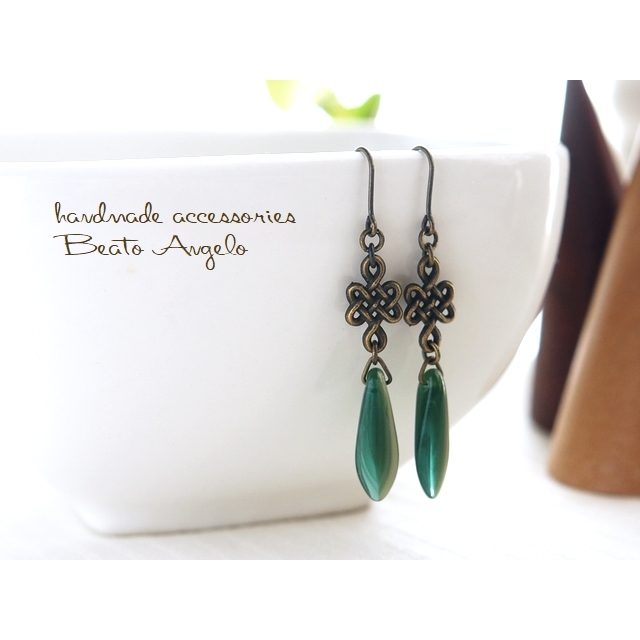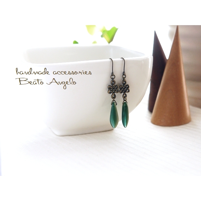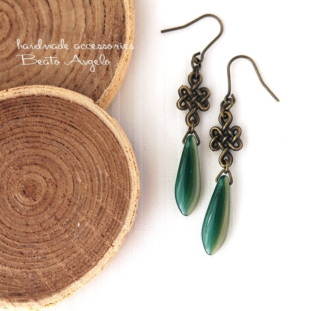 ■+angelo+チェコダガーと網目のピアス(p-206)グリーン&ベージュ AG 金古美
