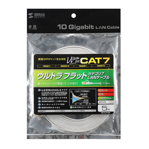 ※配送の送り主はサンワサプライ(株)と記載されています。沖縄・離島配送不可となります。 当店は正規販売代理店です。 特長 カテゴリ5eの6.0倍、カテゴリ6の2.4倍の伝送帯域である600MHzをクリアします。帯域が広いほど高速伝送が可能になり、データエラー防止効果があります。 ケーブル品質とプラグ内のより戻しを極限まで押さえることにより、実用化が急速にすすんでいる10GBASE(10Gbps)に完全対応します。 ※米国FLUKE社DTX-1800(firmware1.1)での測定による。テストテーブル使用でプラグ部分の検証済み。 薄さ1.9mmで取り回しが簡単です。カーペットの下や細いすき間にスッキリ配線できます。 また、ケーブル内部をモールド加工しているので、ケーブルのよりが戻りにくく、性能特性が落ちません。 プラグのツメ(ラッチ)が折れるのを防ぐ、ツメ折れ防止カバー付きで安心です。 サビや酸化被膜の発生を抑え、高精度の接触を保証する金メッキシールドプラグを採用しています。 ケーブルの素材に火災の延焼原因になりにくい素材を使用しています。 気をつけておりますが、タイミングによっては在庫切れの場合があります。 ※ギガビット接続については、接続する他の機器・ケーブルが全てギガビットに対応する必要があります。 仕様