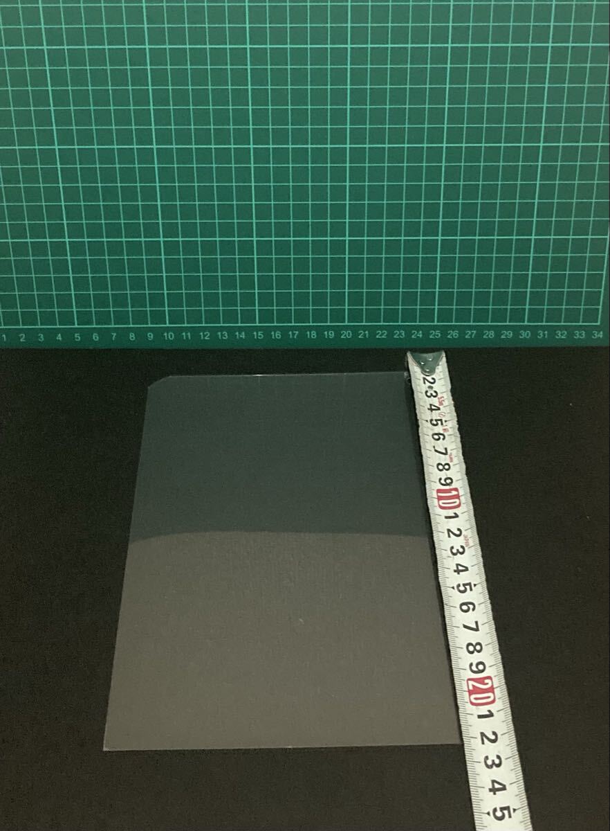 大きさは21cm×16cm厚み0.15mm程度の大きさです。