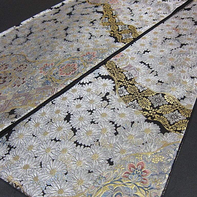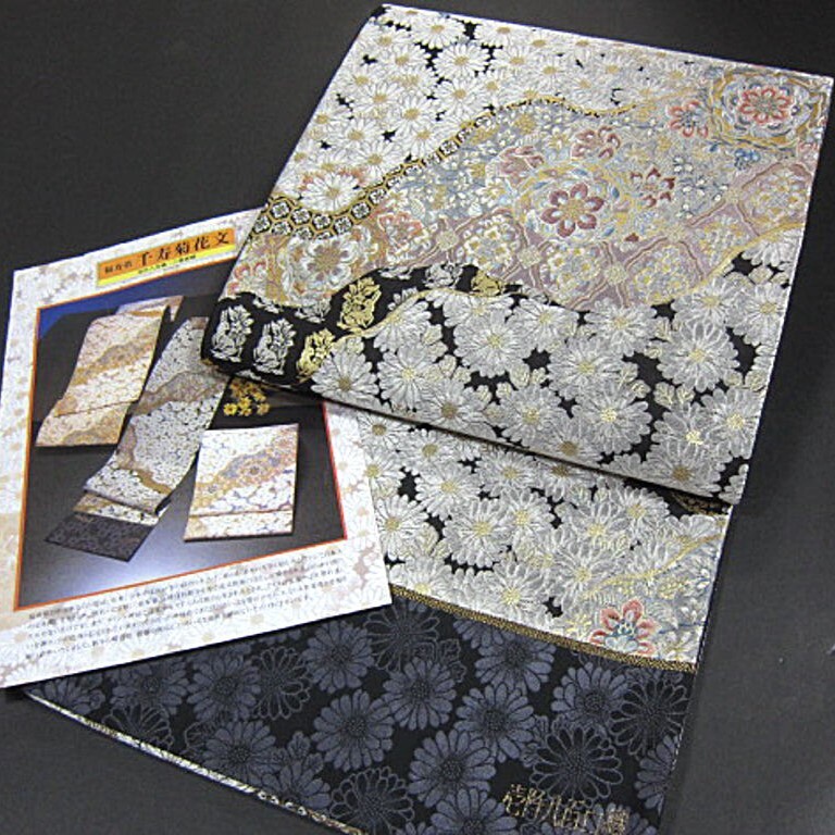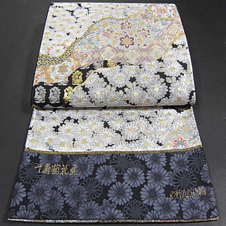 逸品 新品未仕立 西陣織高級六通柄袋帯 壱阡八百織 三重綾織 福寿帯 千寿菊花文