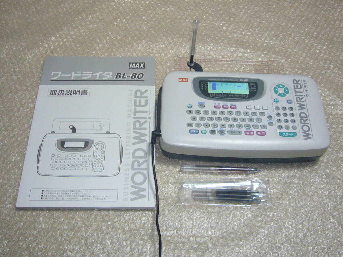 即決 動作確認済 BL-80 ワードライタ 電源、黒ボールペン1本、赤ボールペン1本、替芯黒3本付 マックス ワードライター