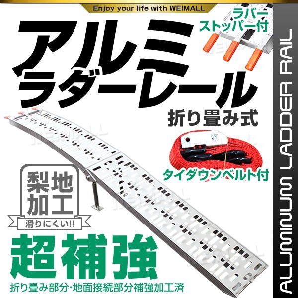 ATV四輪バギー・ダンプやトラック等にユンボやローラー・耕運機・バイクなどを積込みする為の折りたたみ式アルミラダーです。 表面に梨地処理施しており、通常タイプより滑りにくい構造! 車高の低い積込み時に、とても役に立ちます。 軽量加工、滑り止め加工もしております。 折たたみ部分や地面接続部分を補強加工致しておりますので、 より重いものでも耐えられるようになりました。 仕 様 折りたたみ式 全長:約2,180mm 折りたたみ時サイズ:約1110×300×145mm 耐荷重:340kg 幅 : 280mm 重量 8.0kg 素材 : アルミ ※写真と実物は多少異なる場合がございます。あらかじめご了承下さい。 ※画像にございます、アルミラダーを立てかけた黒い台は付属しておりません。 |