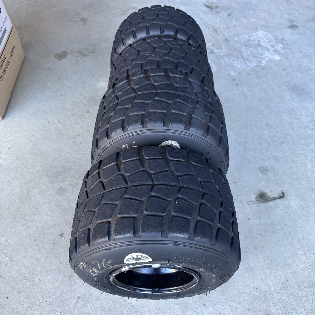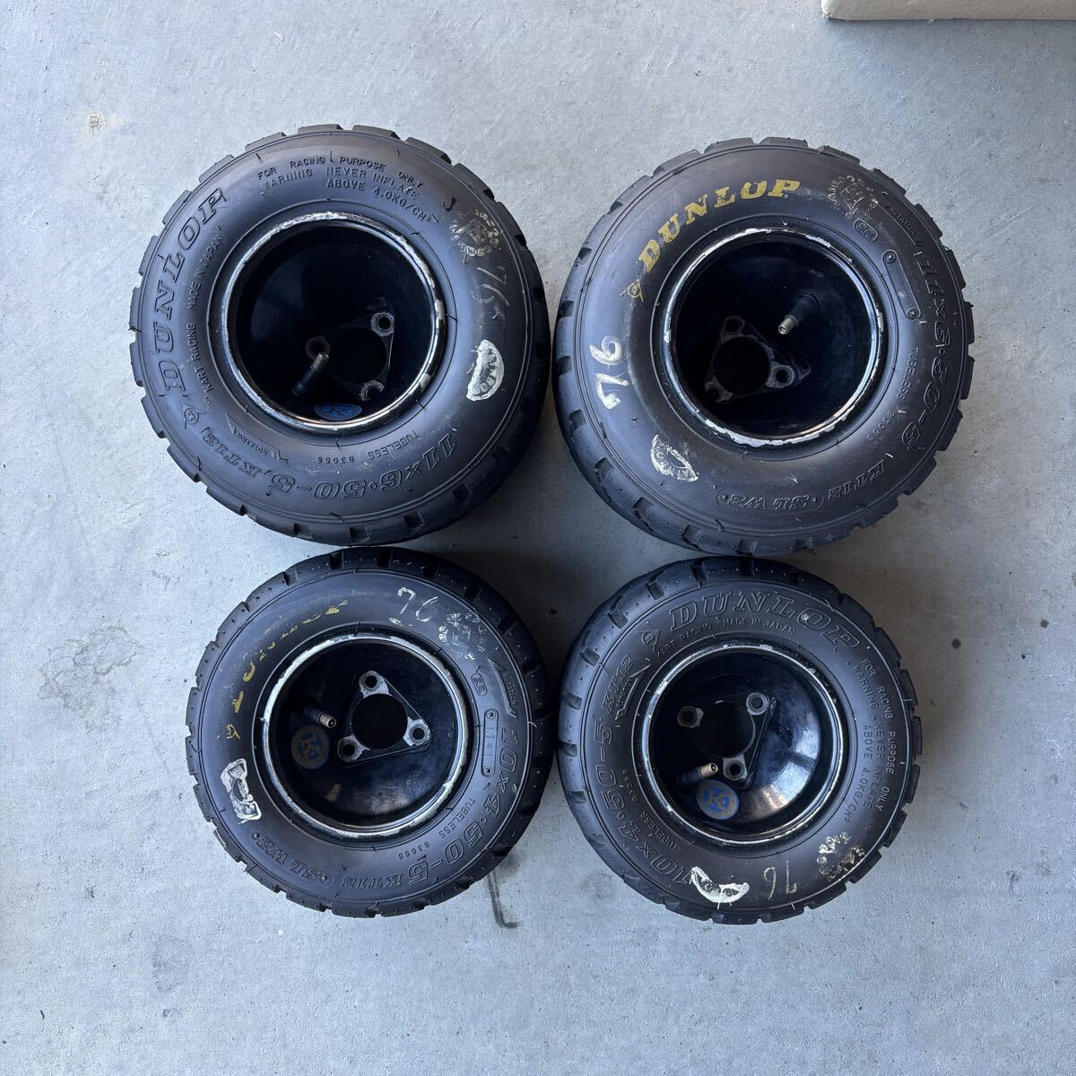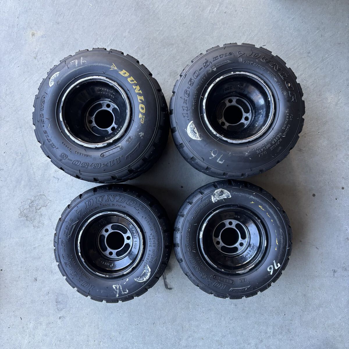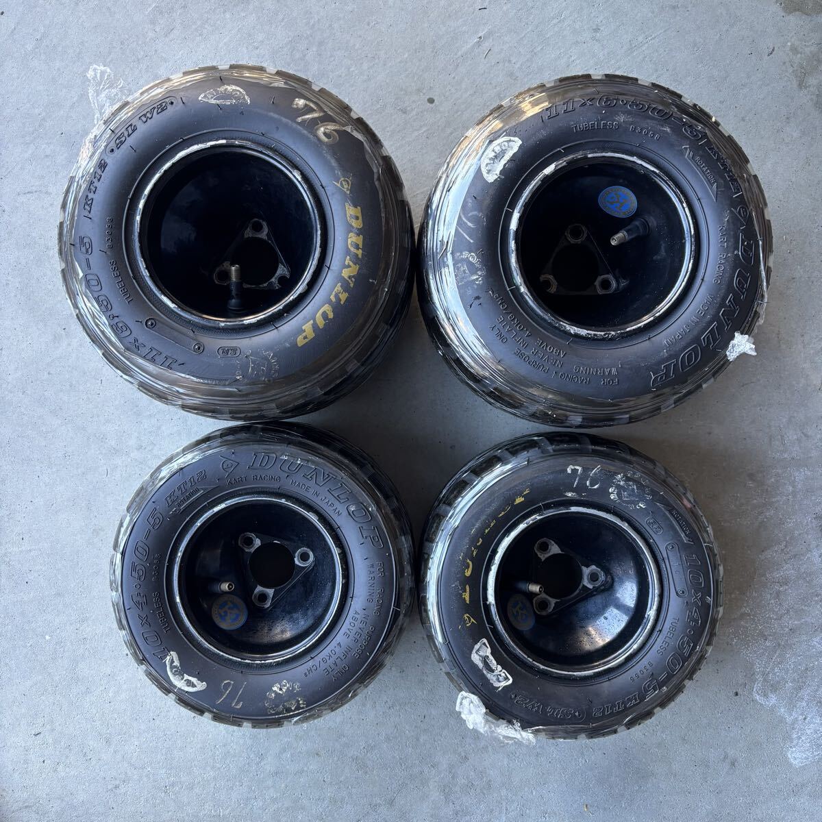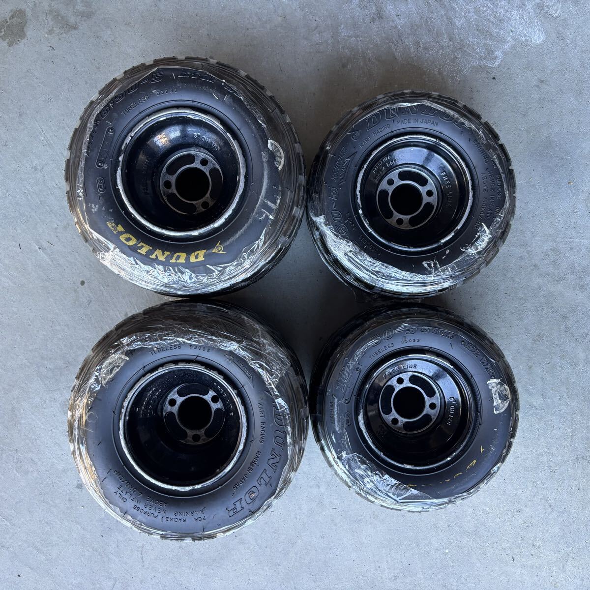 レーシングカート用タイヤDUNLOP SLW2とフリーラインアルミホイールのセットです。