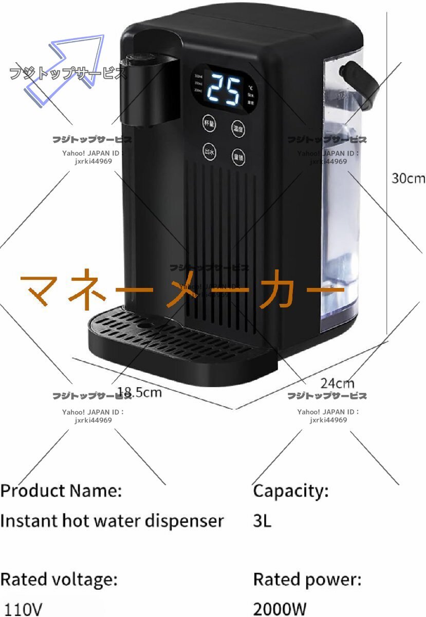 家庭用 卓上ウォーターサーバー 12段階温度調整3秒即熱湯 温水 冷水 3L 2000Wハイパワー 水道水 安全設計 操作簡単 110V