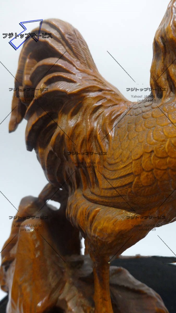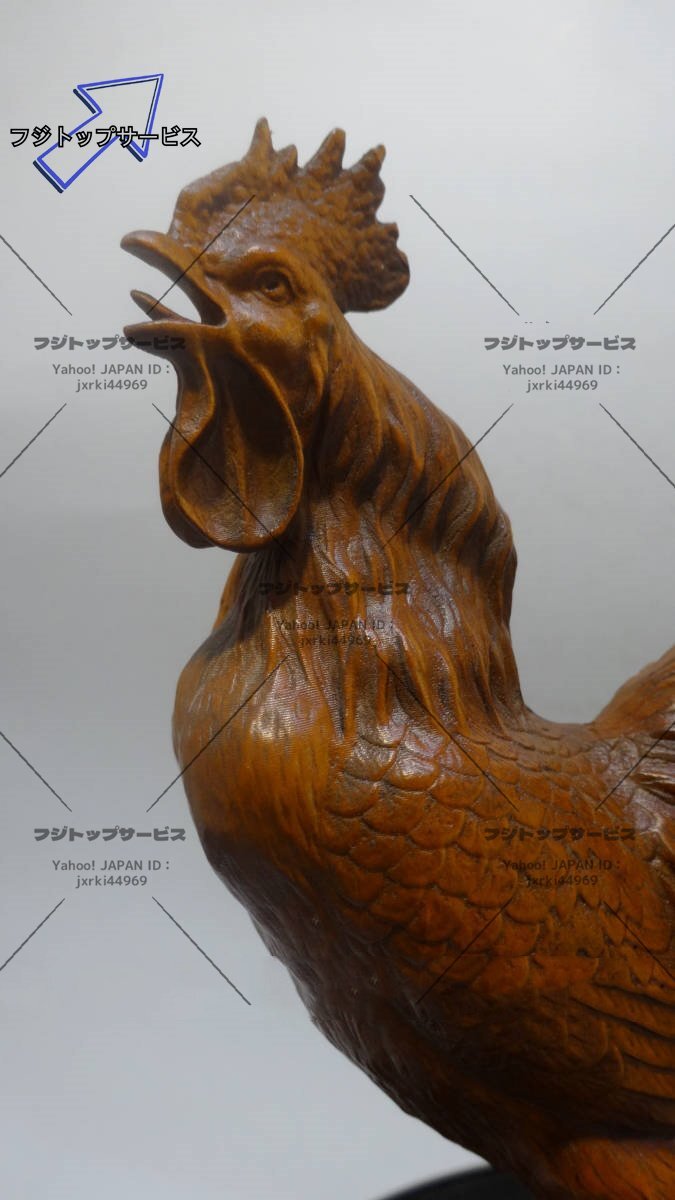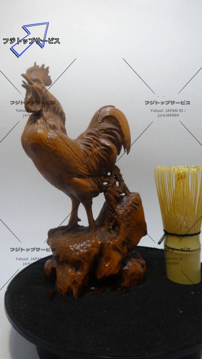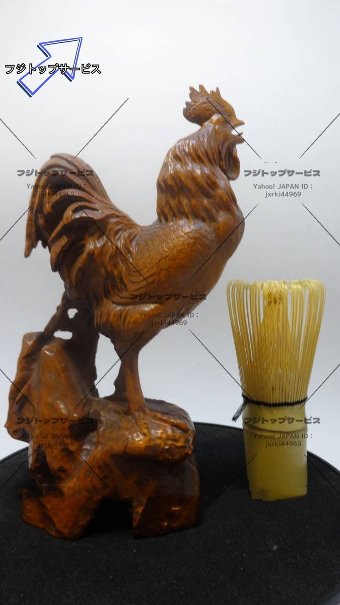 新作 拓植木細彫 十二干支 鶏 置物 鳥 古美術 時代彫刻 美術工芸