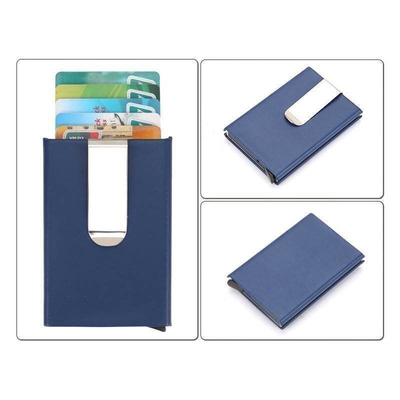 送料0円 カードケース 003 [ネイビー] スキミング防止 RFID マネークリップ メンズ レディース 薄型 スライド式 アルミ製 安心 磁気防止